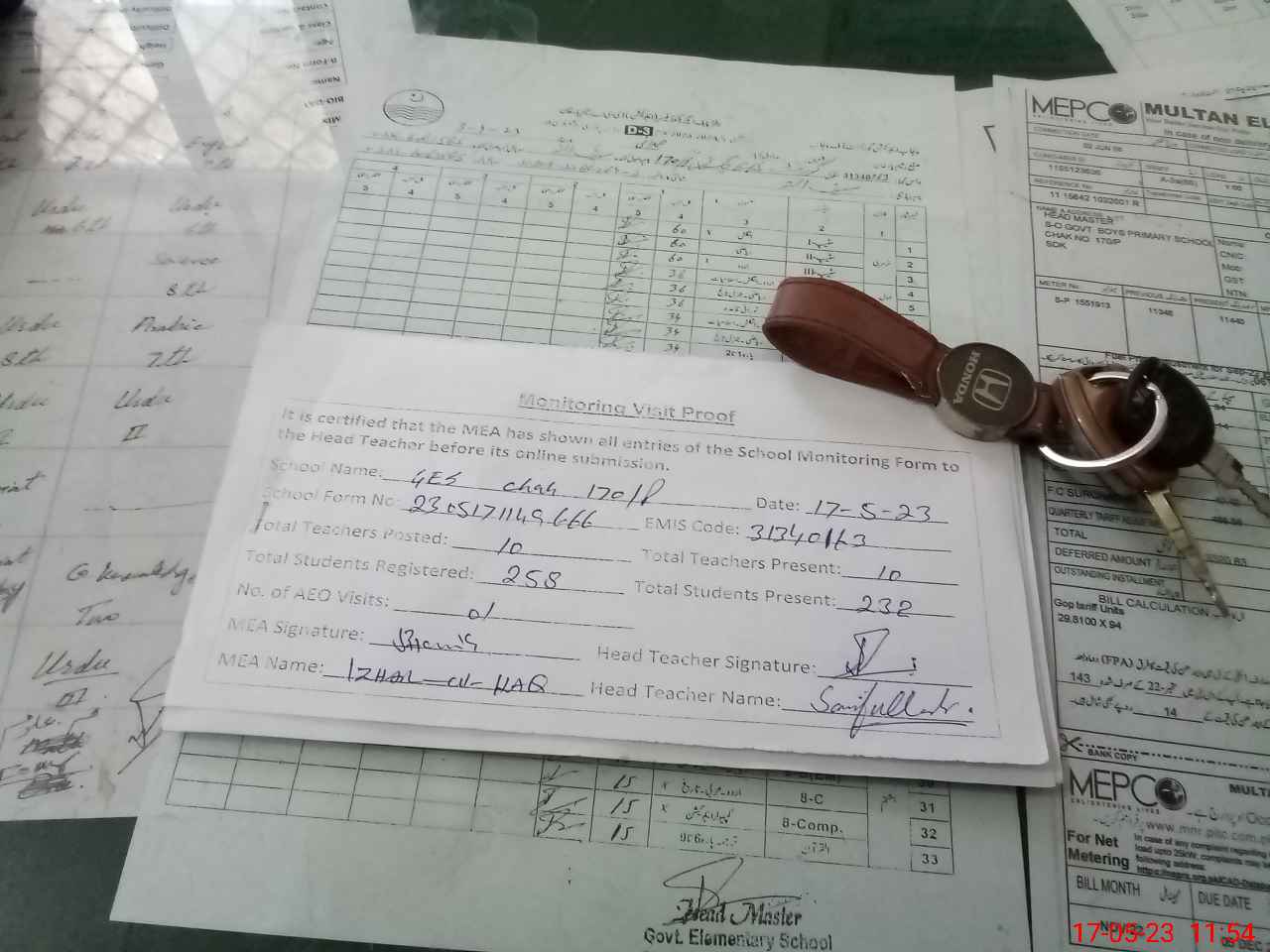 | Attendance Register | Head Teacher | MEA with School | Visit Proof |