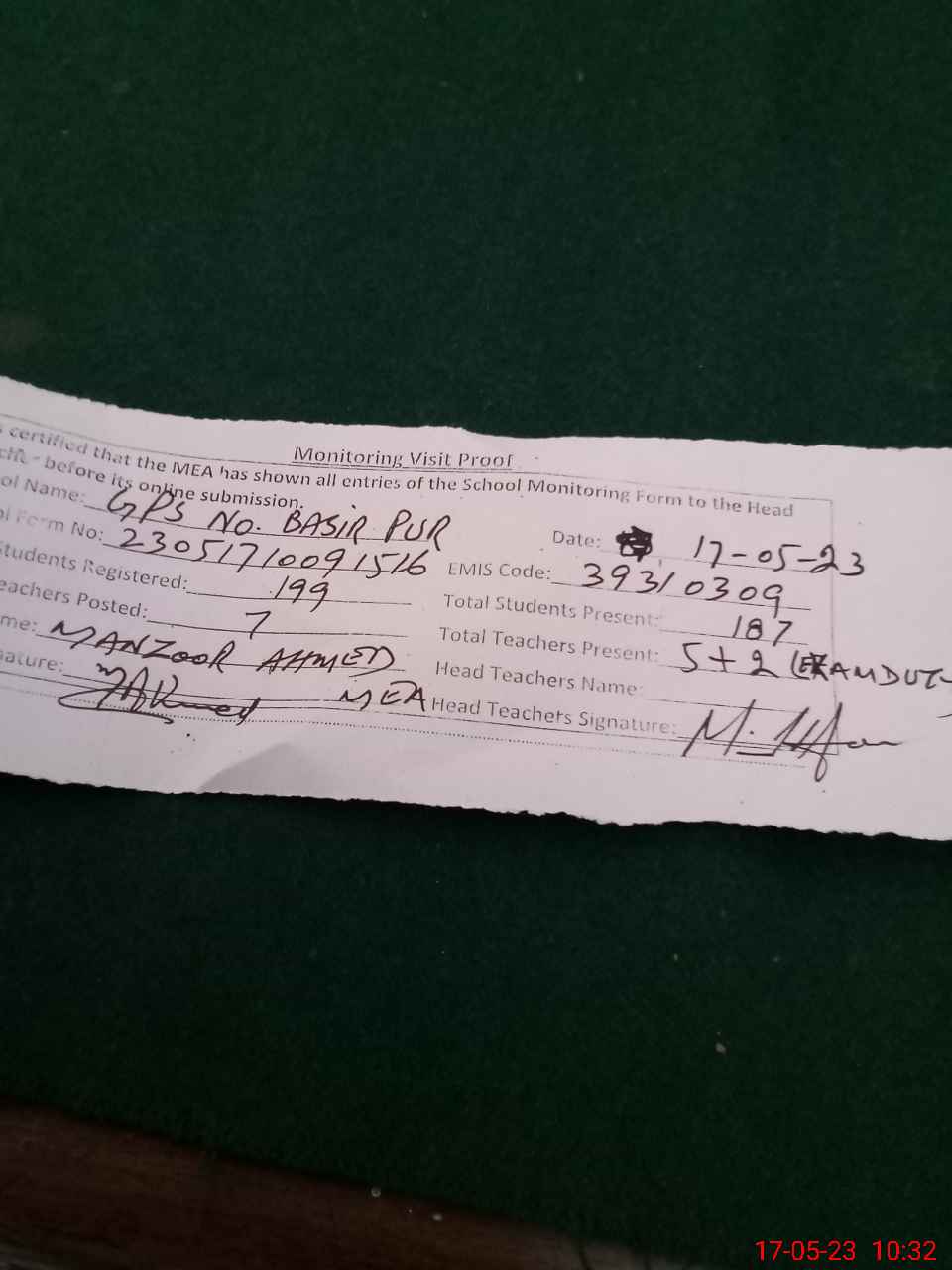 | EMIS Code: 39310309 | Name of School: GPS NO. 4 BASIR PUR | |||