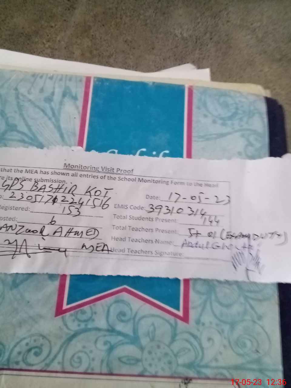 | EMIS Code: 39310314 | Name of School: GPS BASHIR KOT | |||