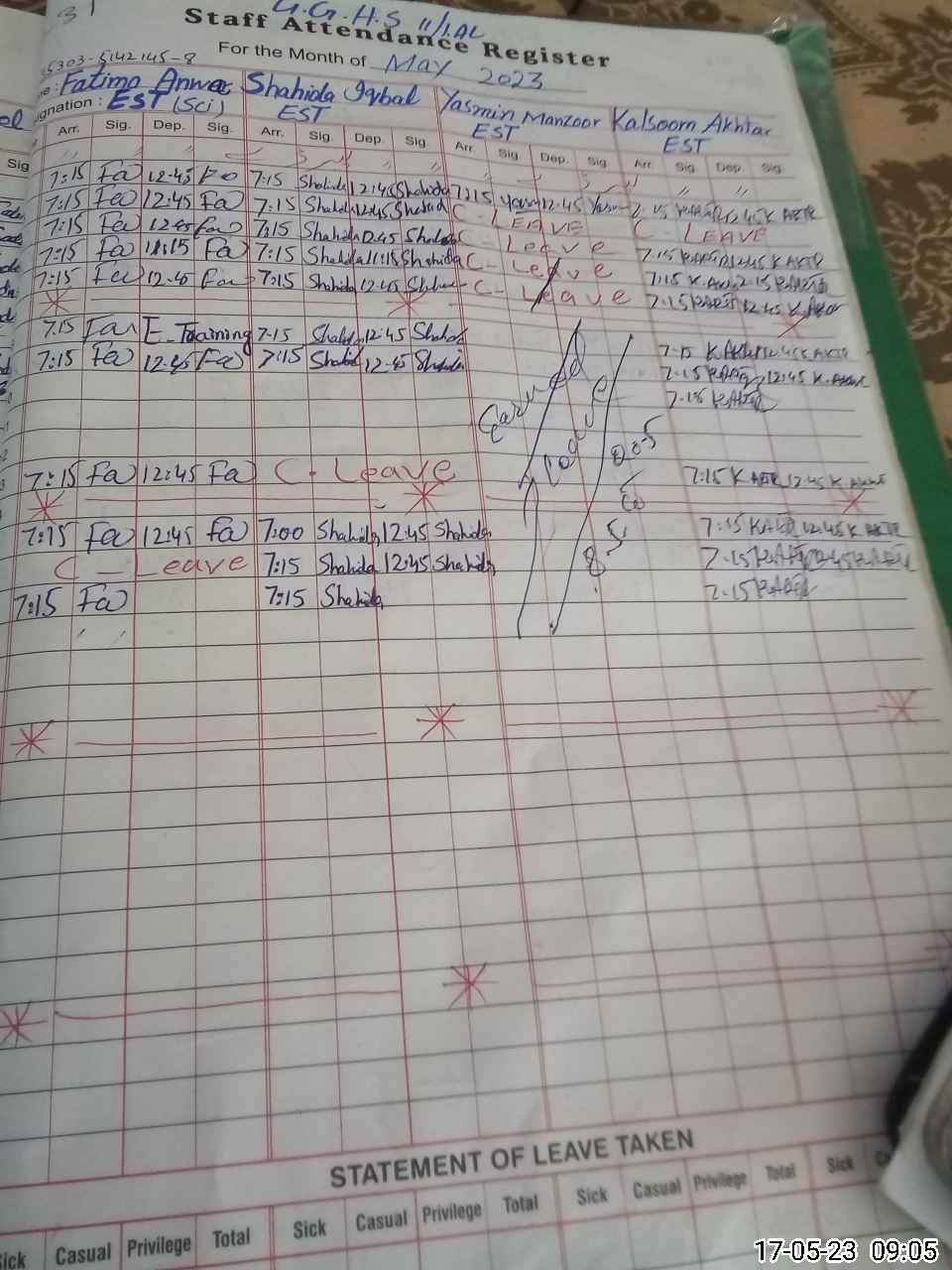 | Monitoring Date: 17-05-2023 | Start Time: 17-05-2023 09:01 AM | End Time: 17-05-2023 10:52 AM | Name of MEA: MU**** AH**** (R**** | |