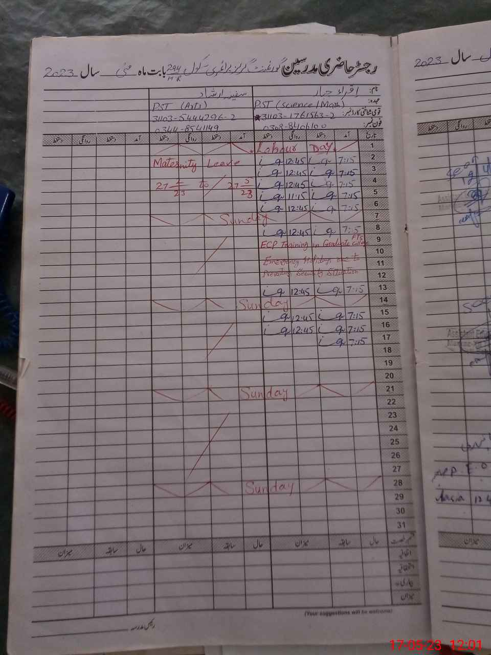 | Name: IQ**** JA**** Designation: (School Headmaster's/Headmistress's) ESE (SC MATH ) Phone/Cell Number: 03**** |