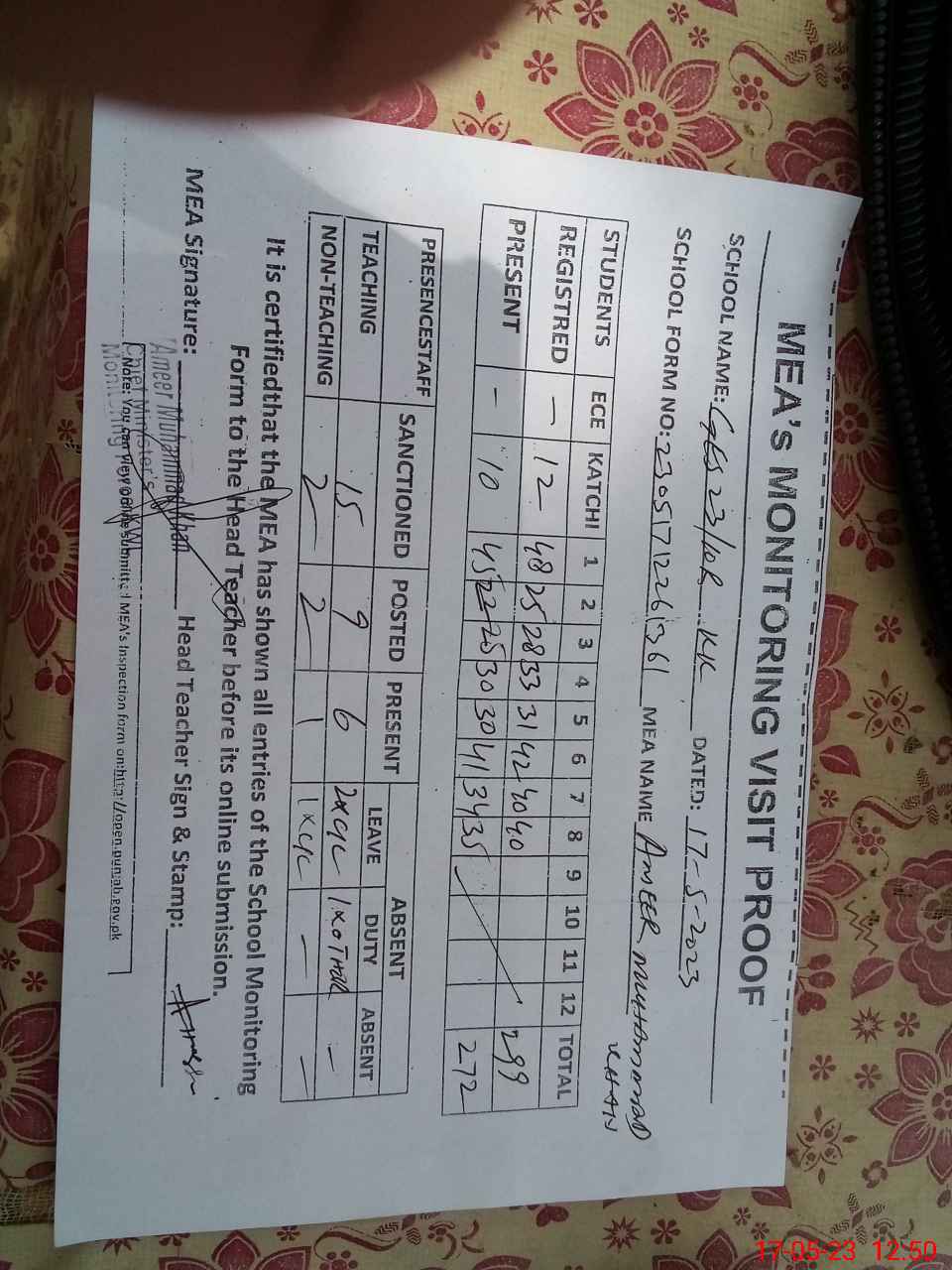 | EMIS Code: 36420076 | Name of School: GES 23/10-R, KACHA KHUH | |||