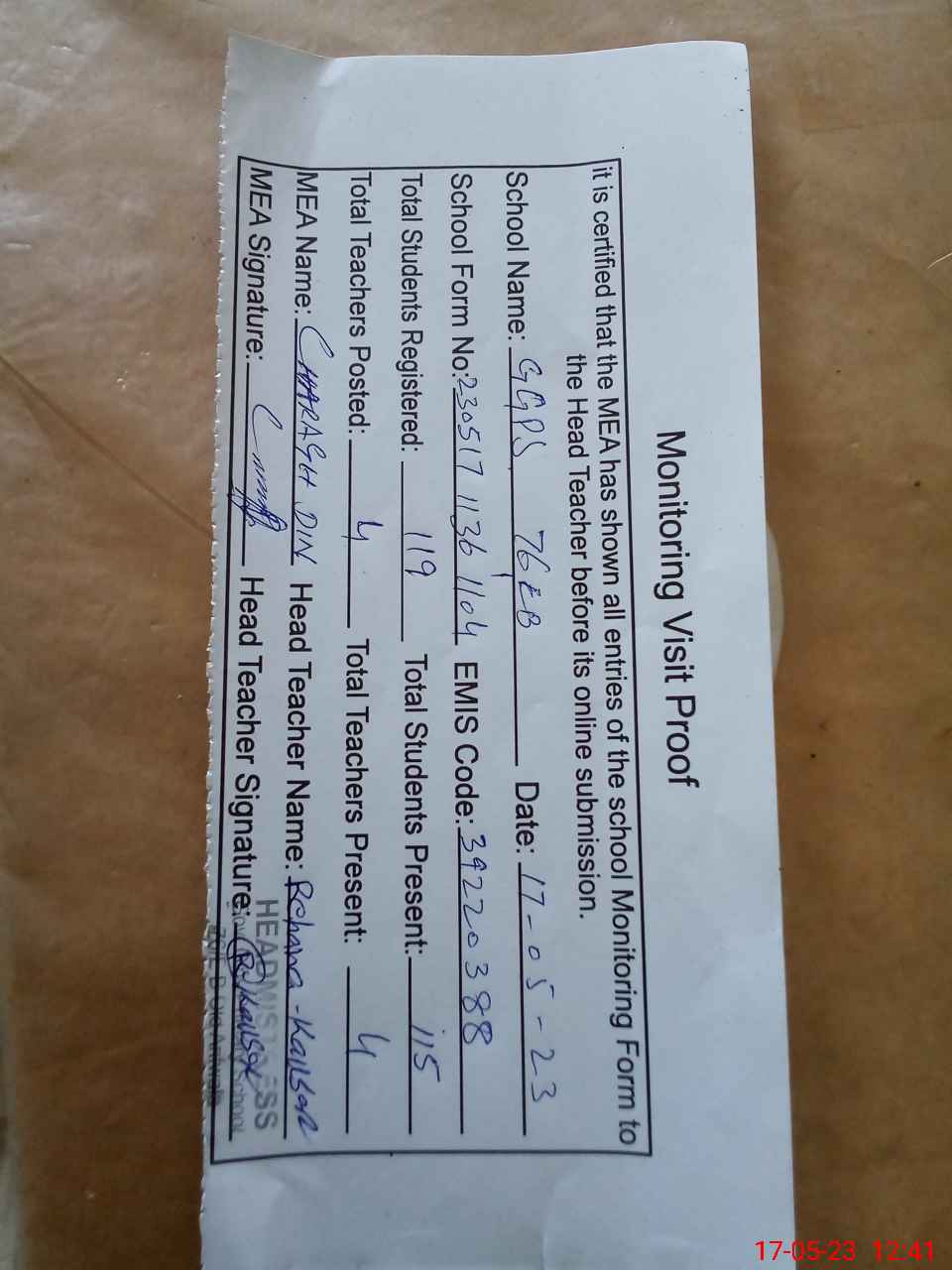 | EMIS Code: 39220388 | Name of School: GGPS 76 EB ARIFWALA | |||