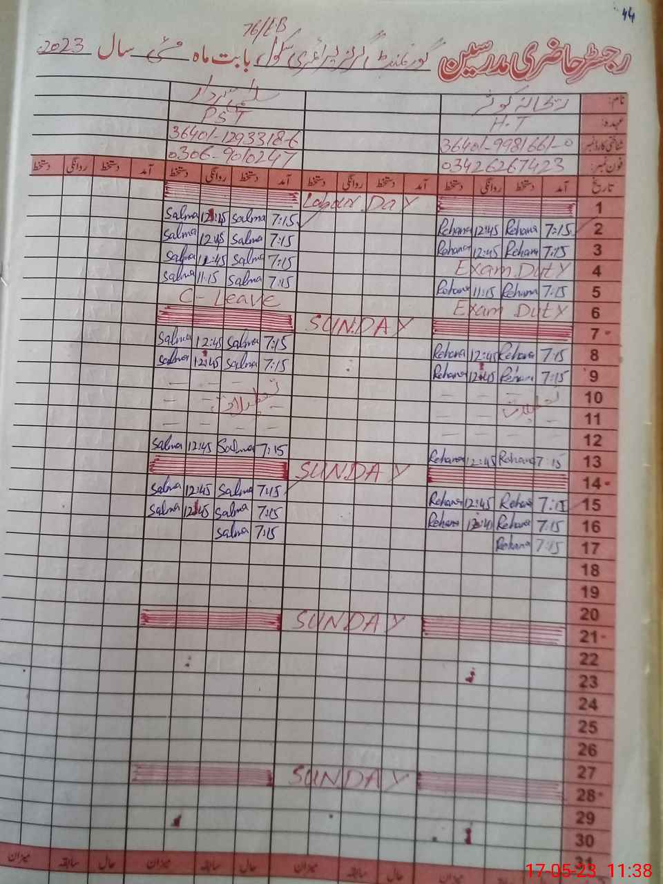 | Name: RE**** KO**** Designation: (School Headmaster's/Headmistress's) PST Phone/Cell Number: 03**** |