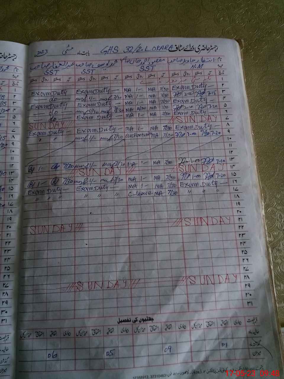 | 35**** | Ab**** Gh**** | SST | Regular | 0 | 0 | 0 | 0 | 0 | 0 | 0 | 0 | 0 | Exam Duty |