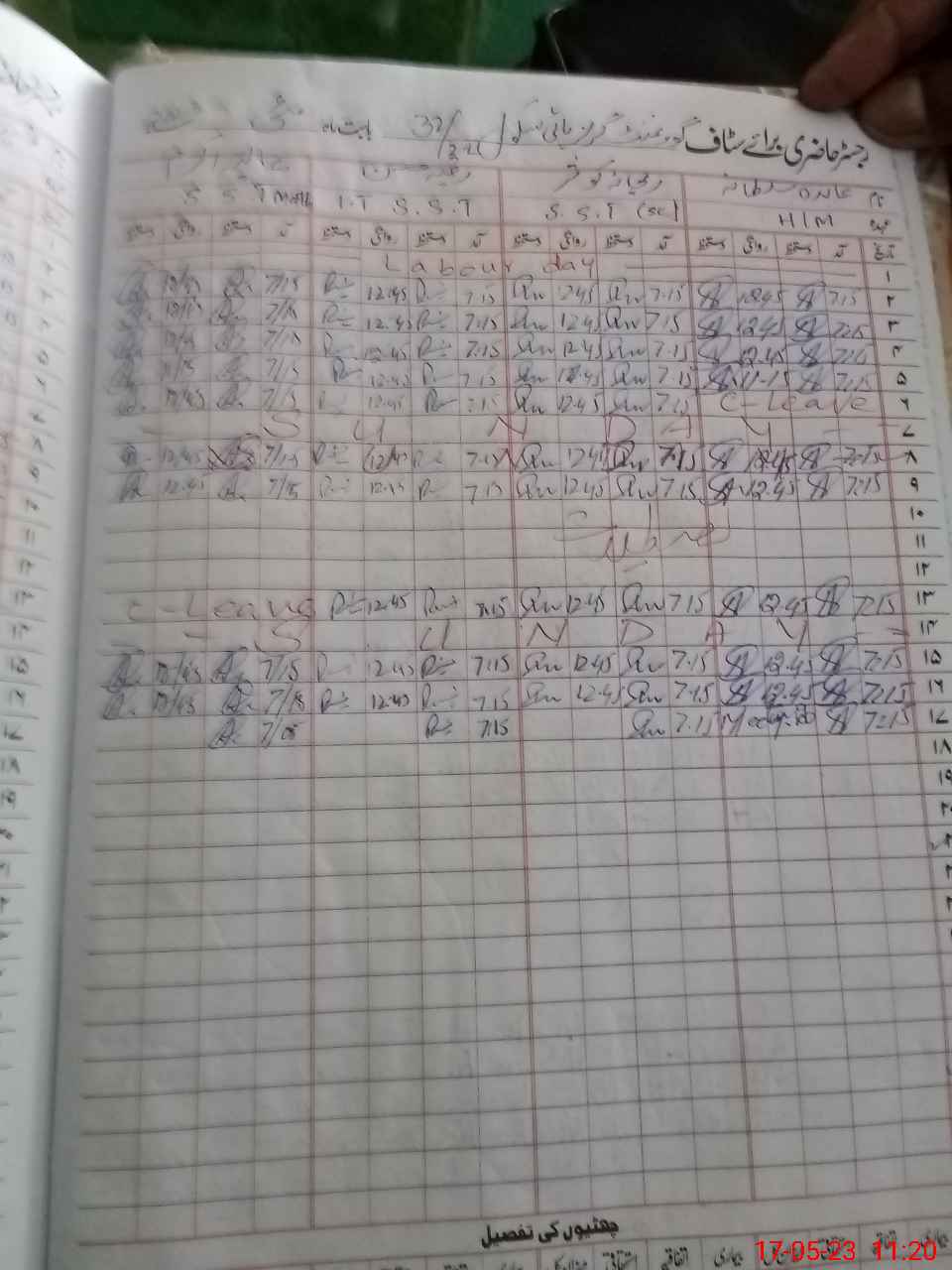 | CNIC | Full Name | Designation | R/C | Absence During Last Calender Month |