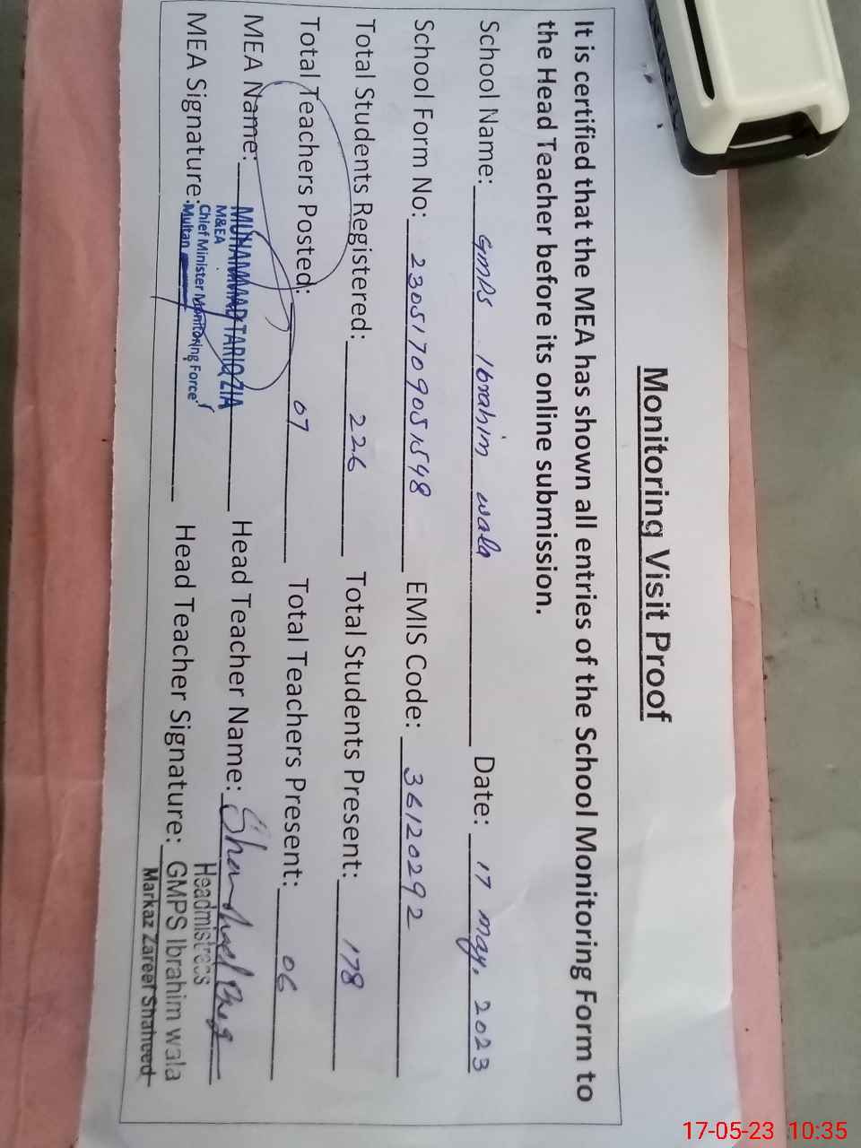 | EMIS Code: 36120292 | Name of School: GMPS IBRAHIM WALA SHUJABAD | |||