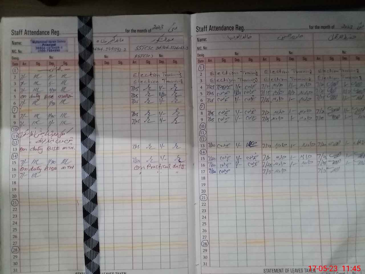 | 36**** | Ab**** Sh**** | SST | Regular | 0 | 0 | 0 | 0 | 0 | 0 | 0 | 0 | 0 | Exam Duty |