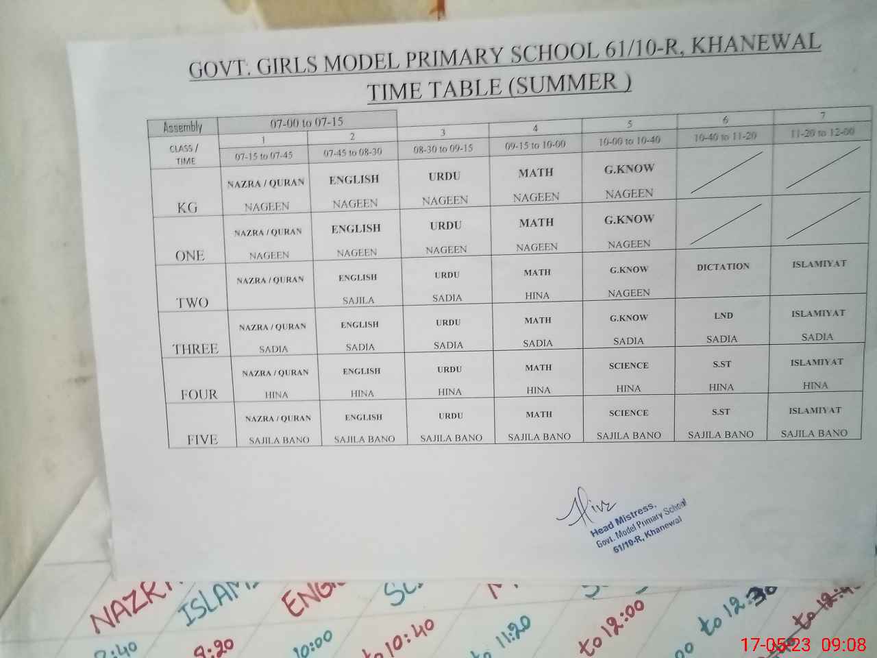 | EMIS Code: 36420388 | Name of School: GGPS 61/10-R, KHANEWAL | |||