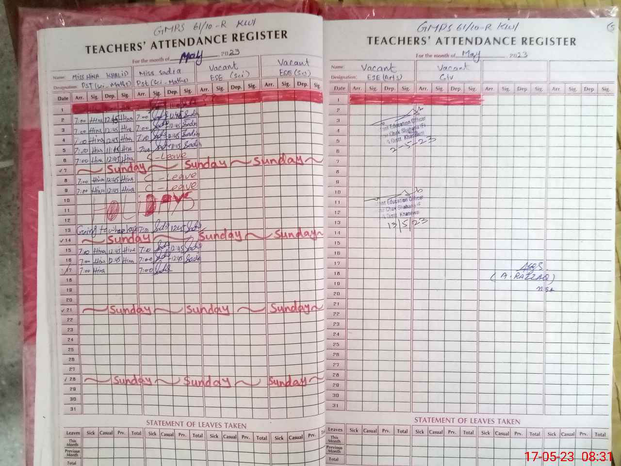 | Name: Hi**** Kh**** Designation: (School Headmaster's/Headmistress's) PST Phone/Cell Number: 03**** |