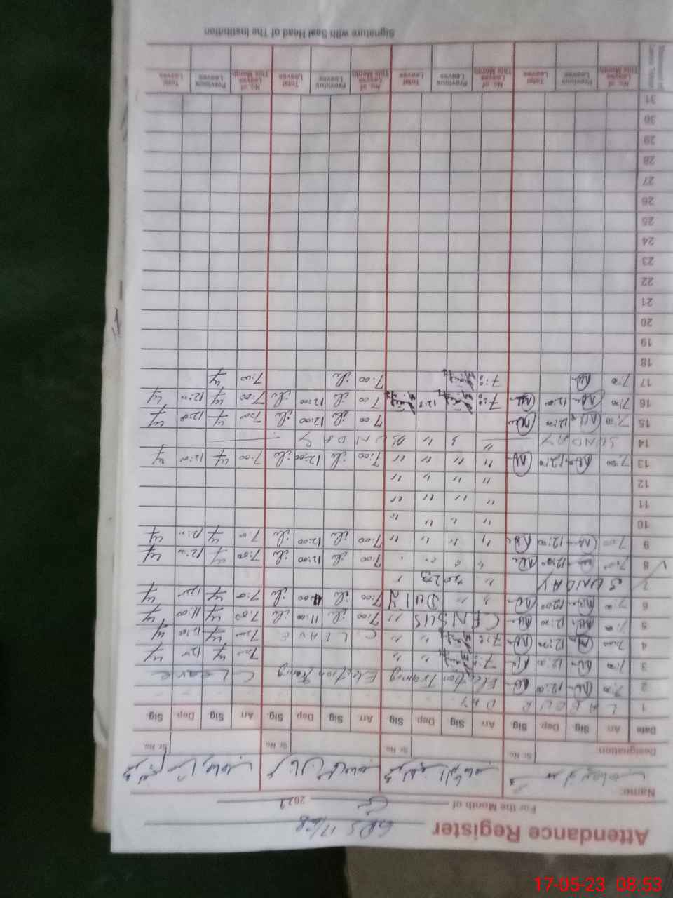 | CNIC | Full Name | Designation | R/C | Absence During Last Calender Month |