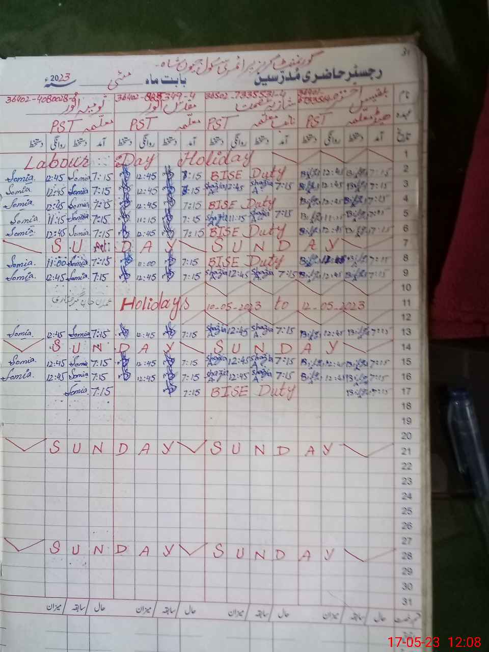 | 36**** | Sh**** Is**** | PST | Regular | 1 | 3 | 0 | 0 | 0 | 0 | 0 | 0 | 1 | Exam Duty |