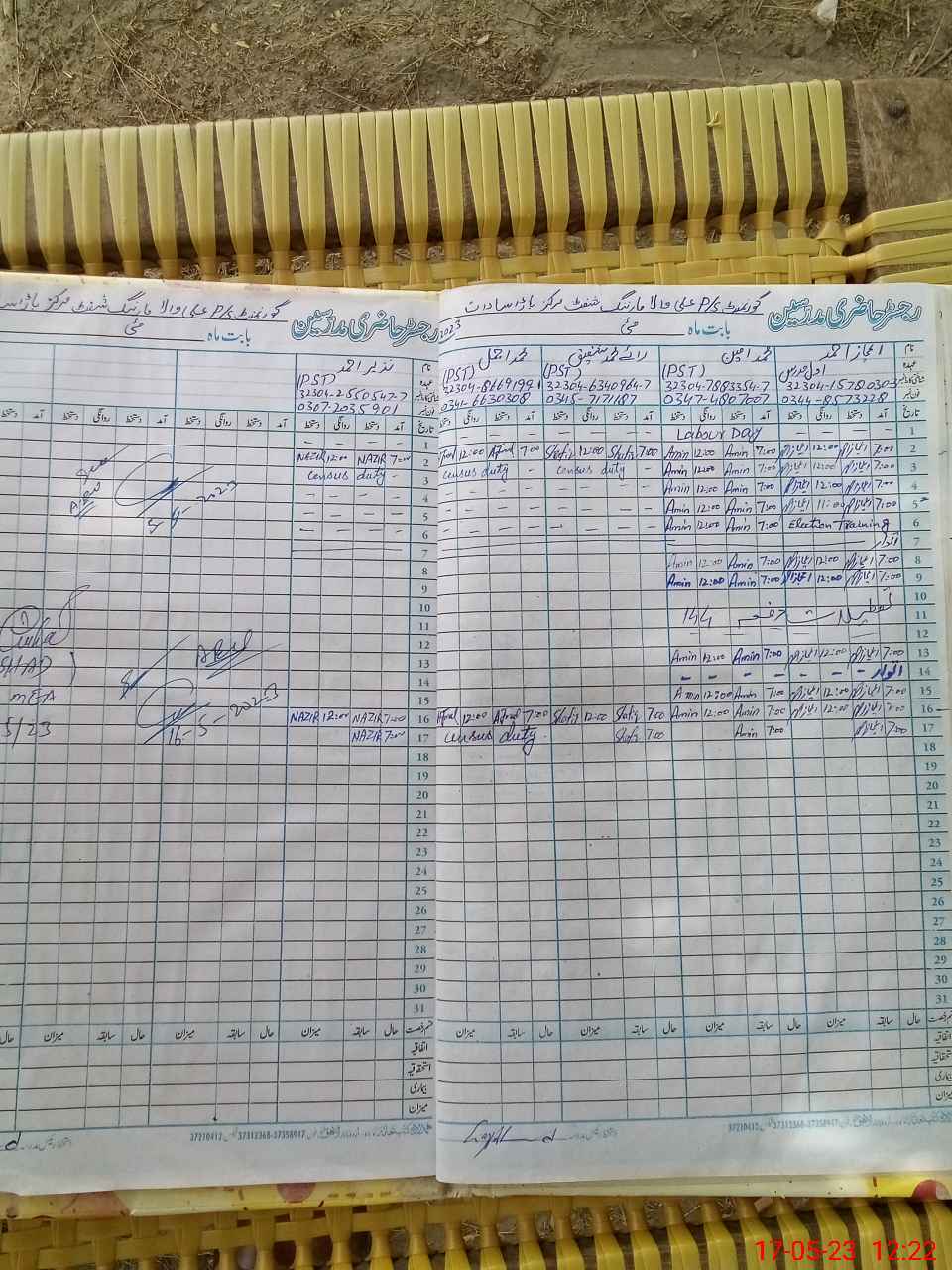 | CNIC | Full Name | Designation | R/C | Absence During Last Calender Month |
