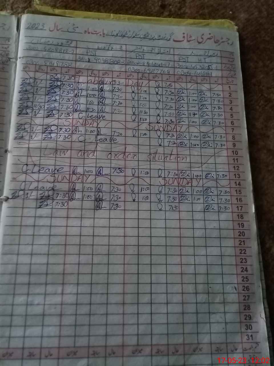 | CNIC | Full Name | Designation | R/C | Absence During Last Calender Month |