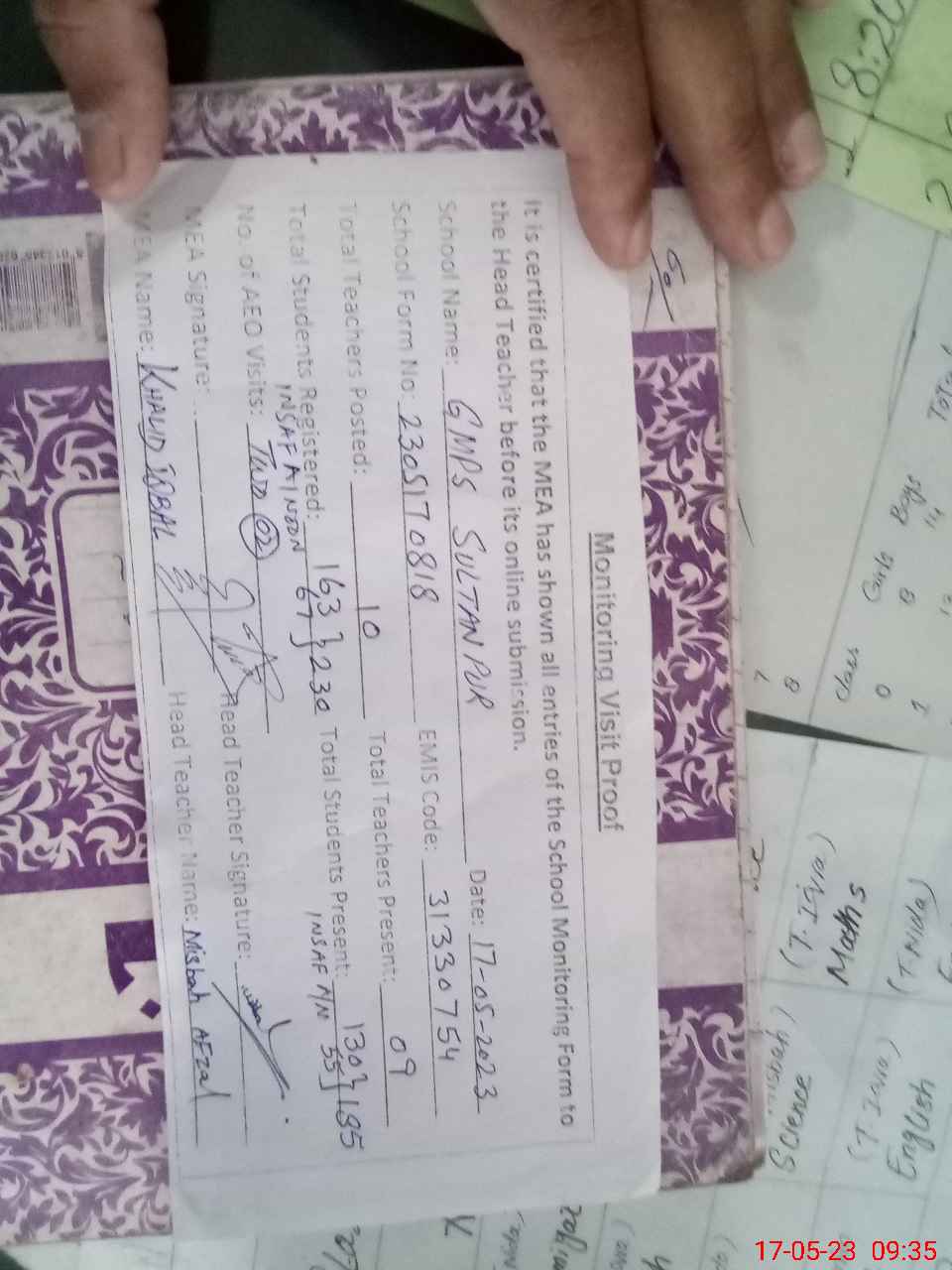 | EMIS Code: 31330754 | Name of School: GMPS SULTAN PUR | |||