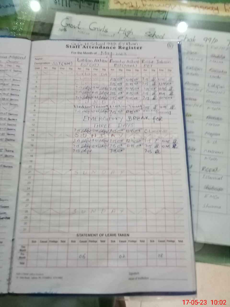 | 31**** | Sh**** Ak**** | PST | Regular | 1 | 21 | 0 | 0 | 0 | 0 | 0 | 0 | 1 | Casual |