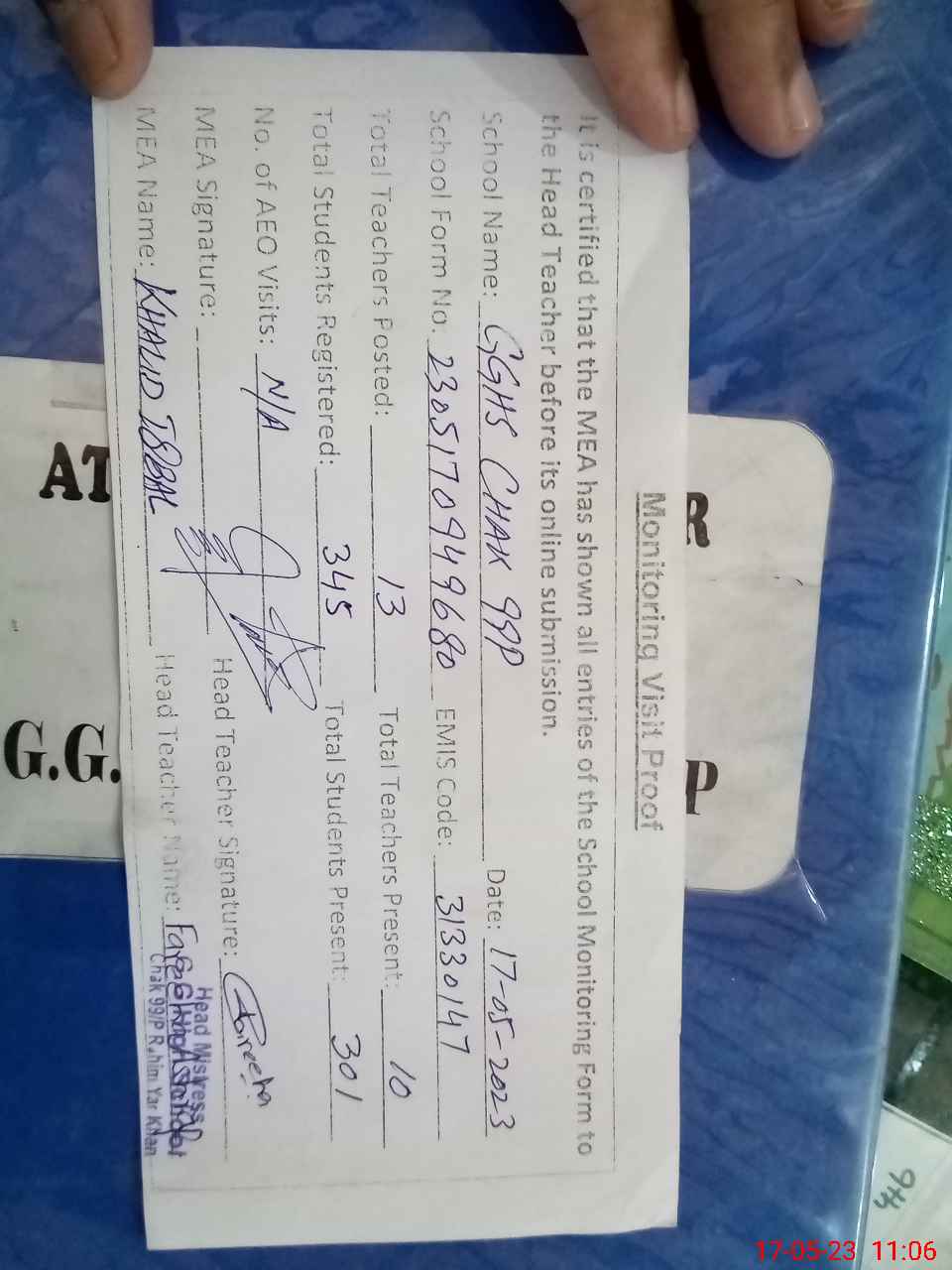 | EMIS Code: 31330147 | Name of School: GGHS CHAK NO. 99/P | |||