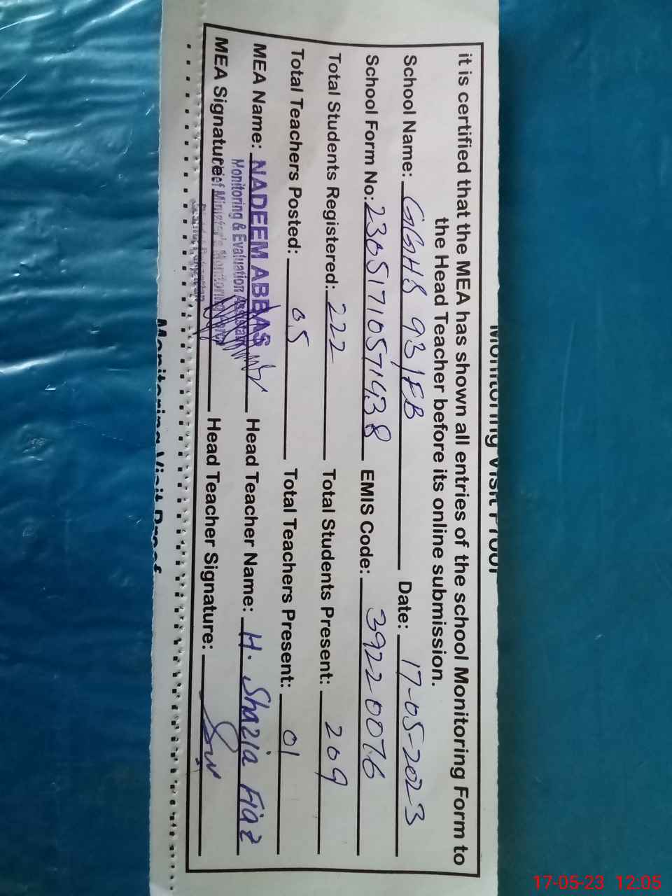 | EMIS Code: 39220076 | Name of School: GGHS 93 EB | |||