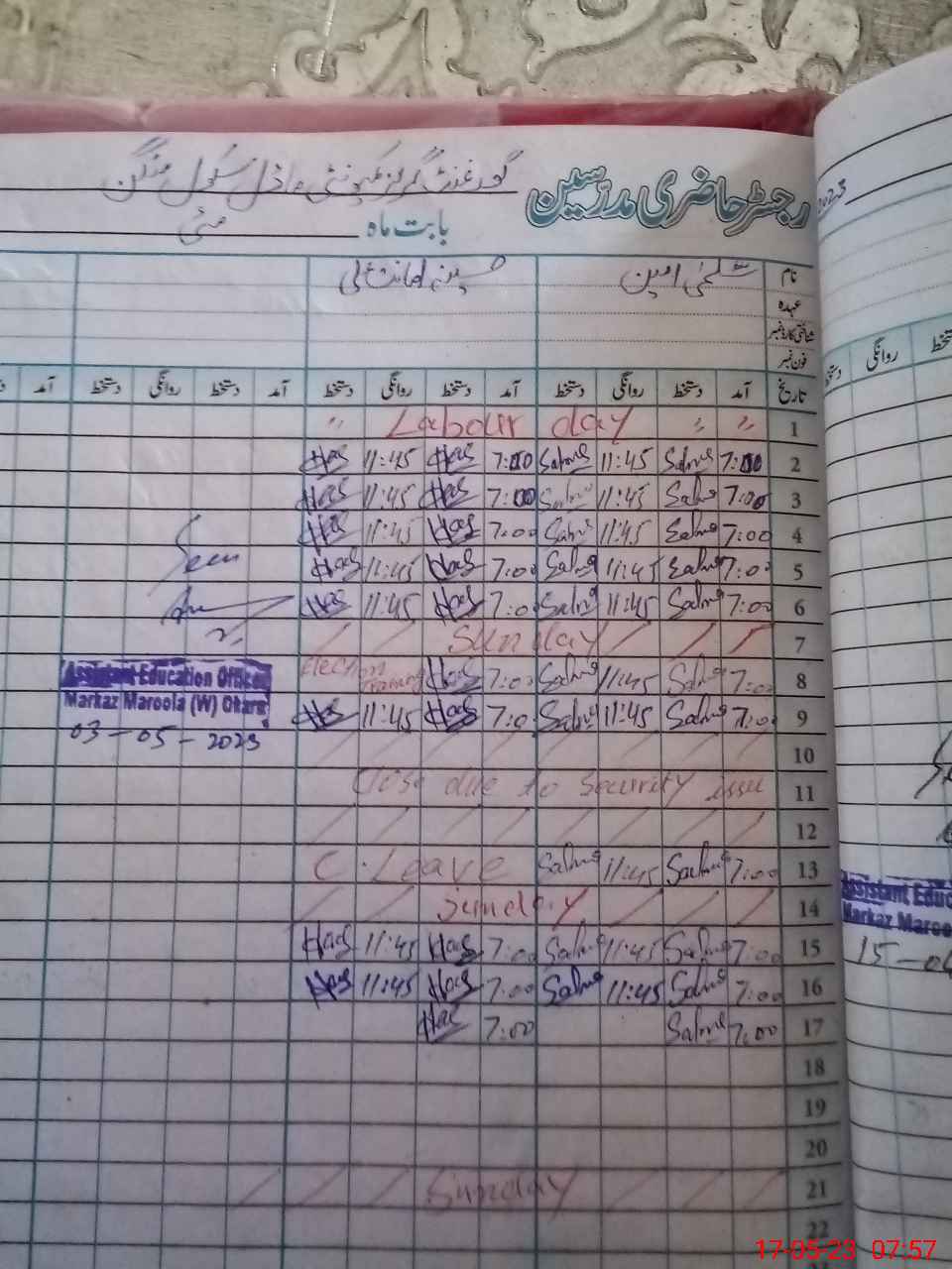 | CNIC | Full Name | Designation | R/C | Absence During Last Calender Month |