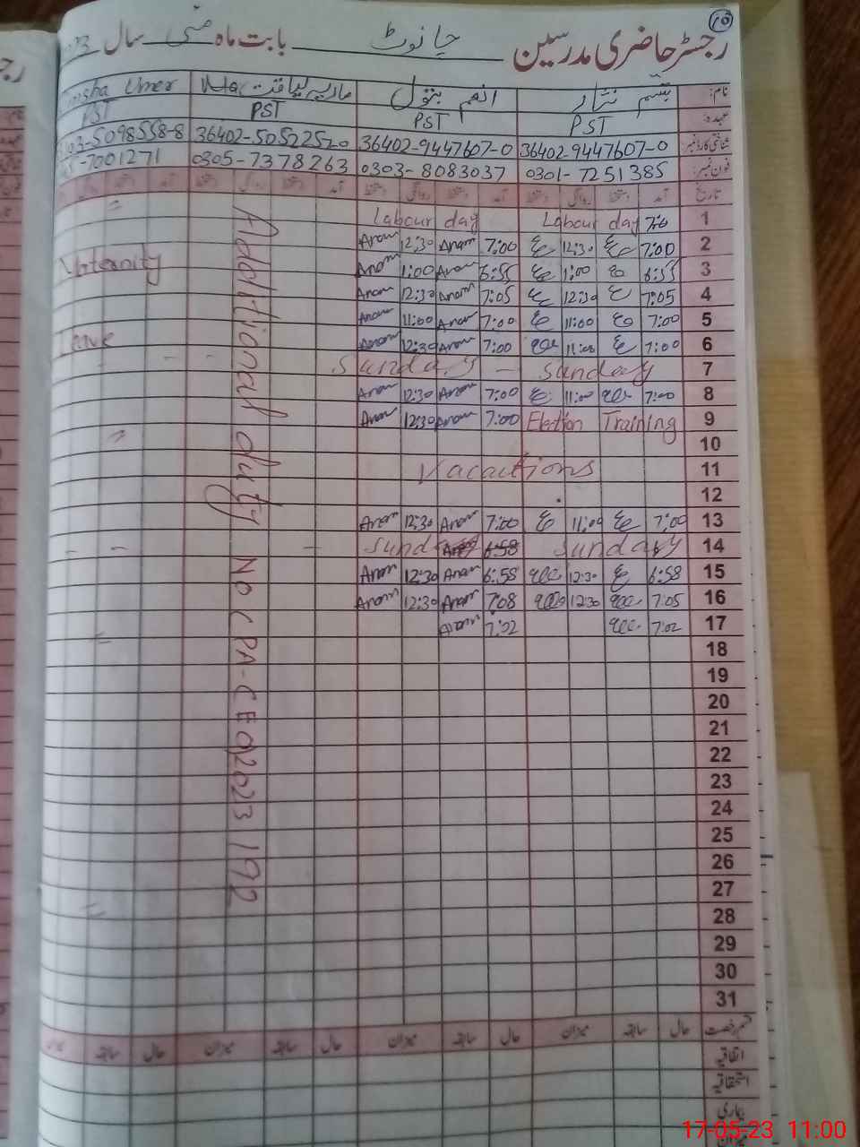 | 33**** | Ri**** Um**** | PST | Regular | 17 | 0 | 0 | 17 | 0 | 0 | 0 | 0 | 0 | Maternity |