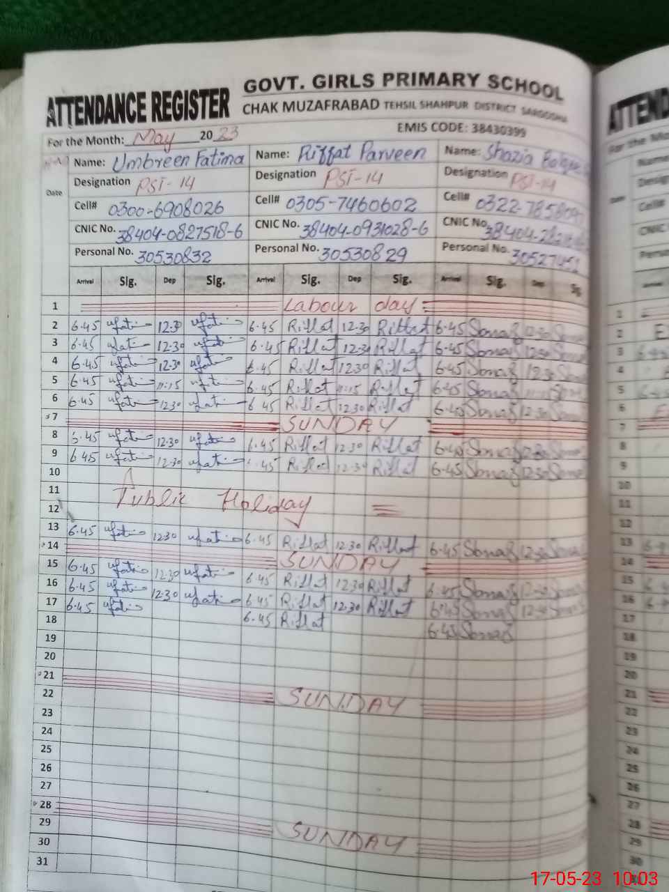 | Name: UM**** FA**** Designation: (School Headmaster's/Headmistress's) PST Phone/Cell Number: 03**** |