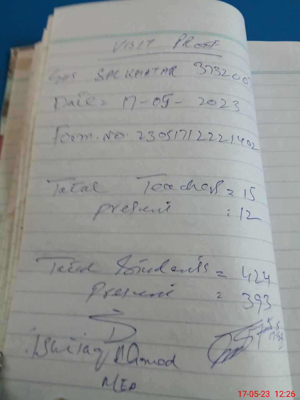 | Attendance Register | Head Teacher | MEA with School | Visit Proof |