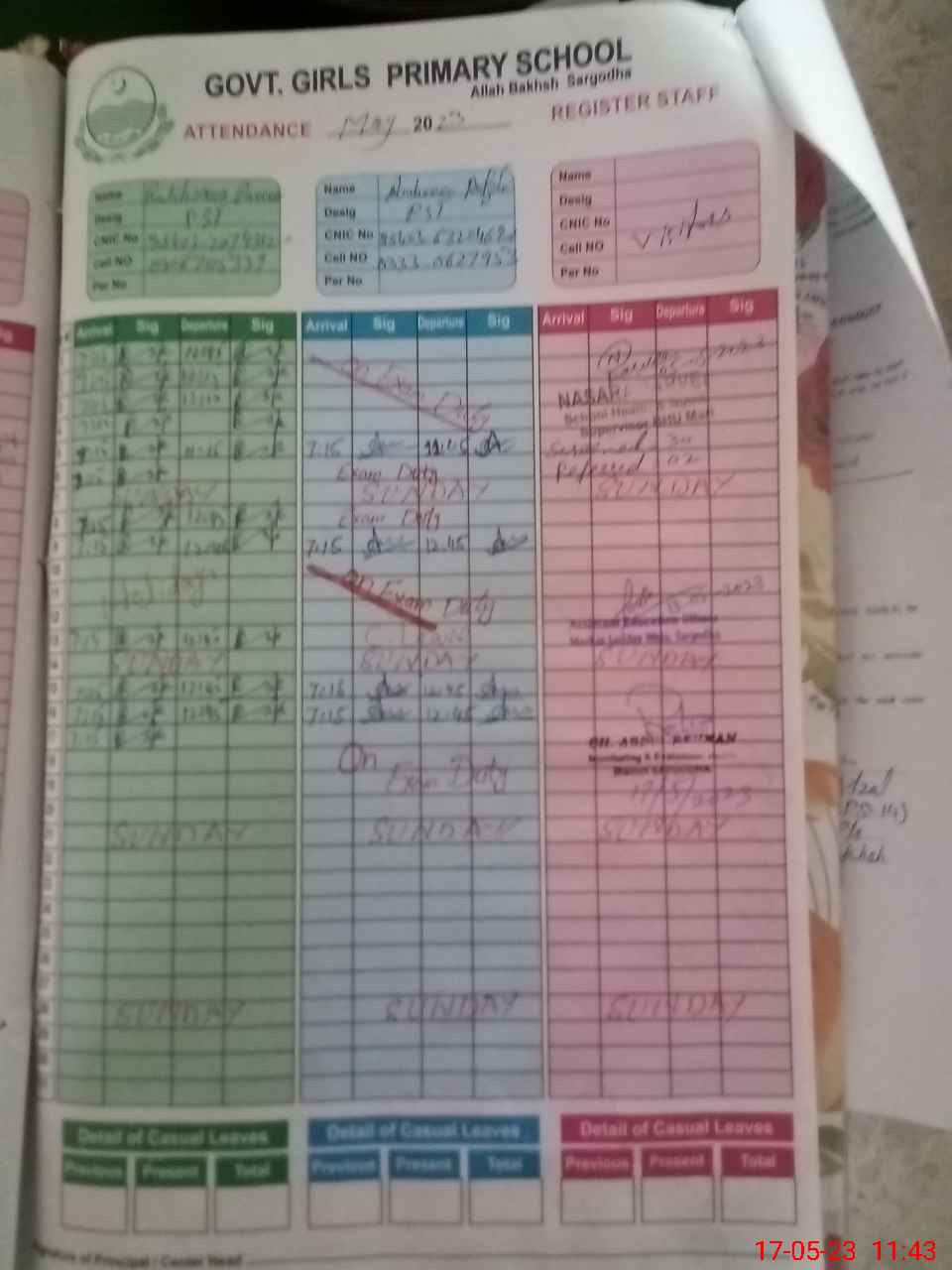 | CNIC | Full Name | Designation | R/C | Absence During Last Calender Month |