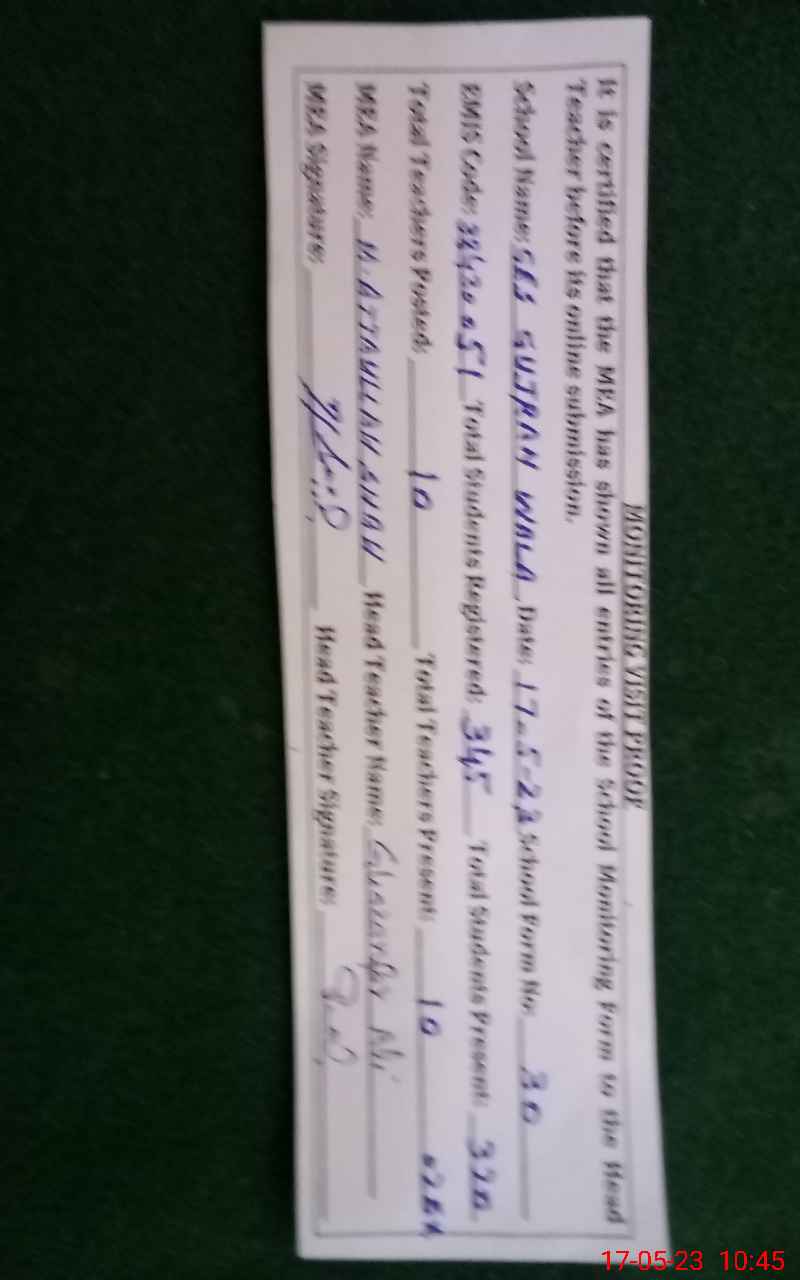| EMIS Code: 38430051 | Name of School: GES GUJRAN WALA | |||