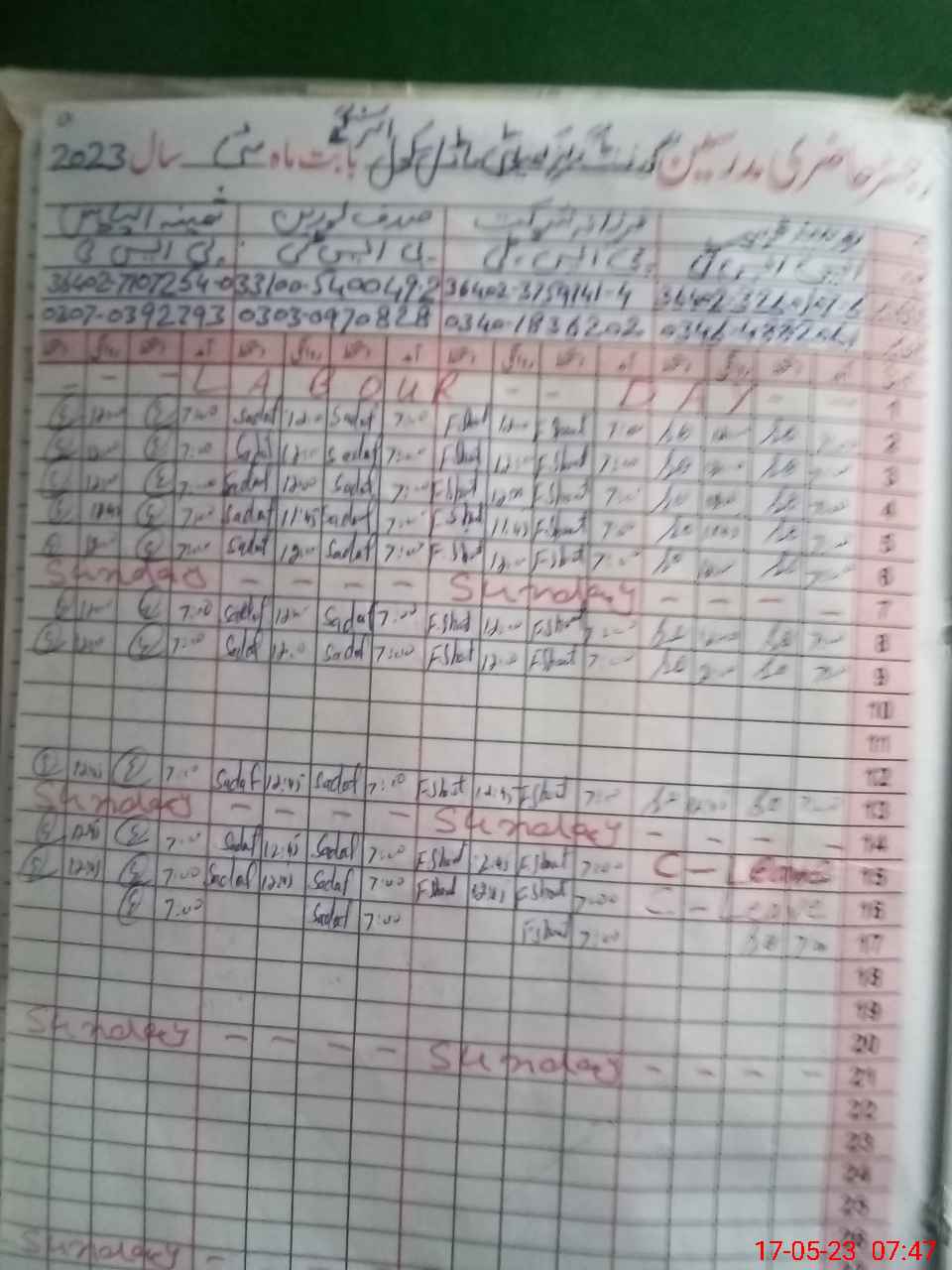 | Name: RO**** ZA**** Designation: (School Headmaster's/Headmistress's) SST (GENERAL) Phone/Cell Number: 03**** |