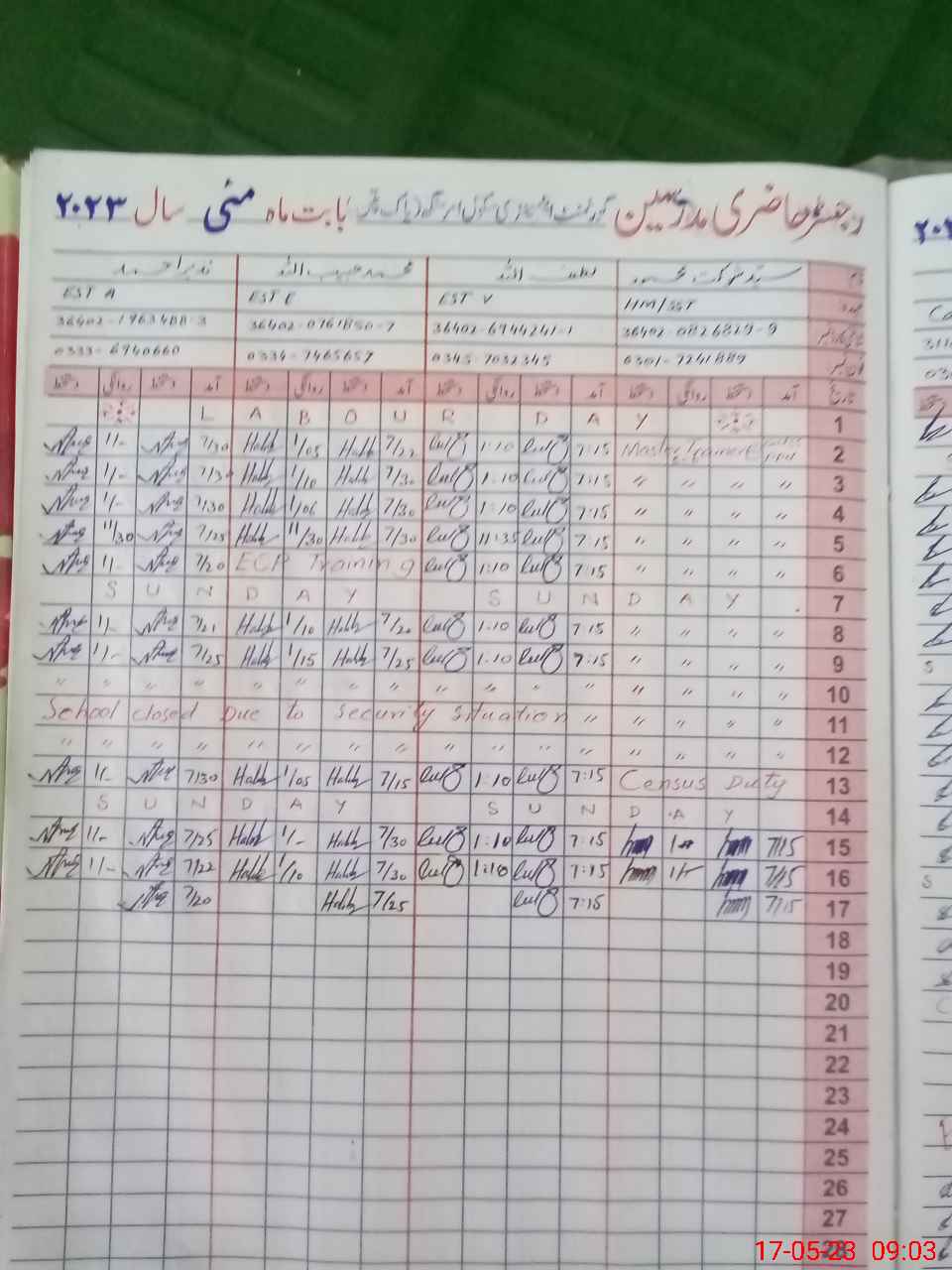 | Name: SY**** SH**** ME**** Designation: (School Headmaster's/Headmistress's) S.S.T (GENERAL) Phone/Cell Number: 03**** |