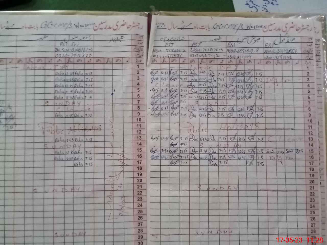 | Name: Mu**** Sa**** Designation: (School Headmaster's/Headmistress's) SST (English) Phone/Cell Number: 03**** |