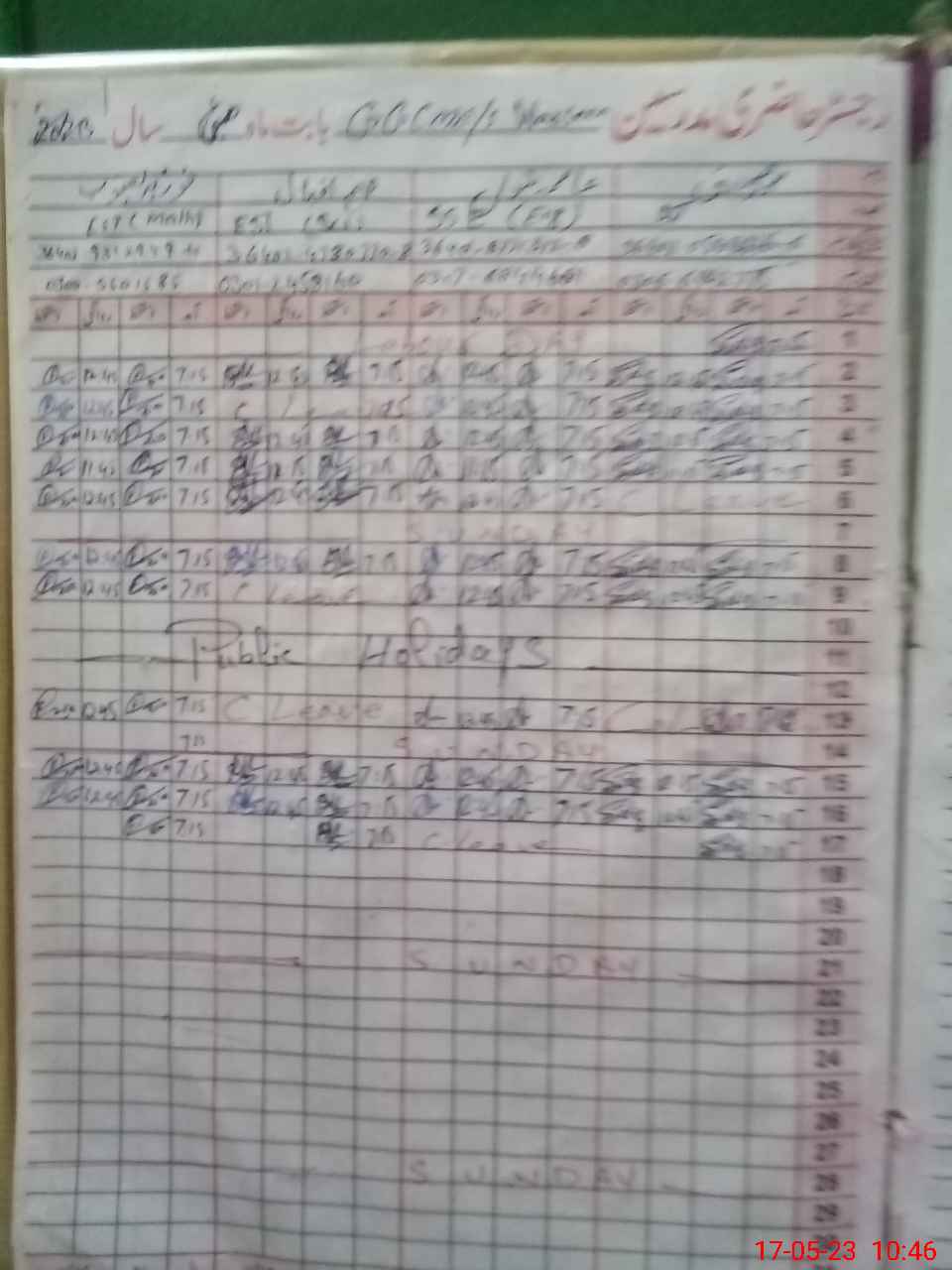 | CNIC | Full Name | Designation | R/C | Absence During Last Calender Month |
