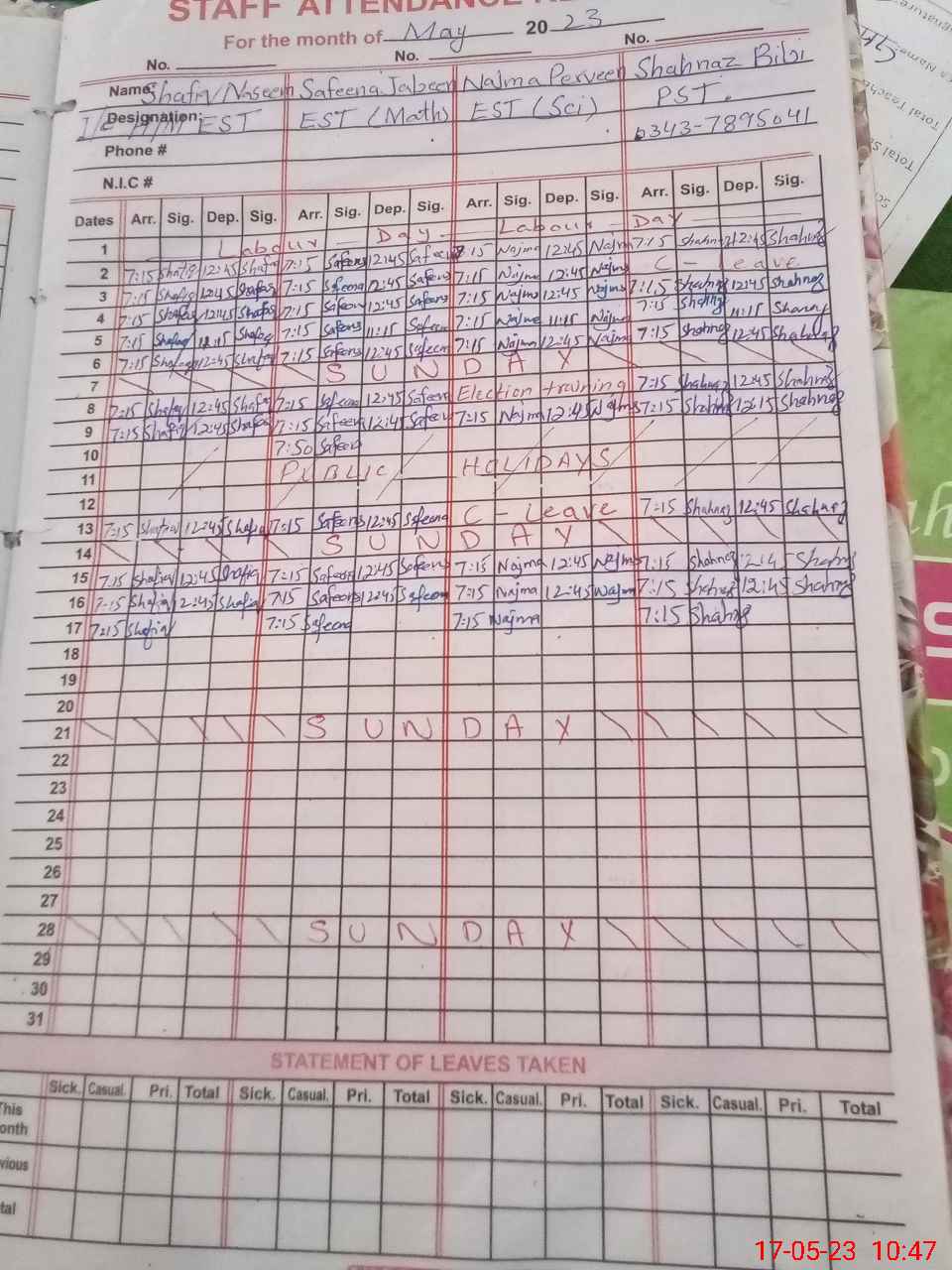 | 33**** | Ha**** Ah**** Ah**** | LAB ATT | Contract | 0 | 0 | 14 | 0 | 0 | 0 | 0 | 0 | 0 | Absent (Un-Authorized) |