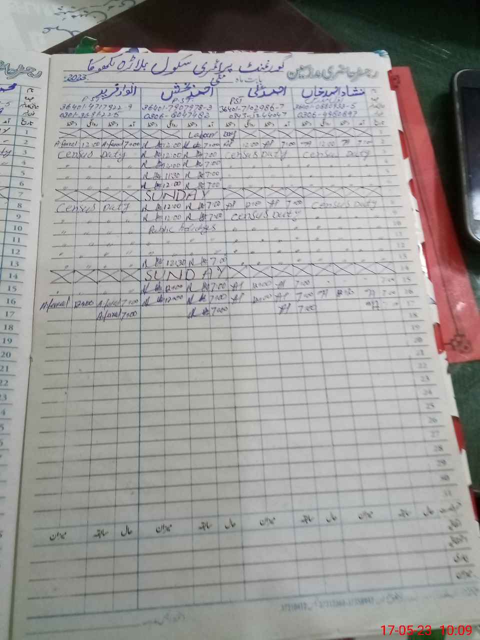 | 36**** | Mu**** Zu**** | Contract | 0 | 9 | 0 | 0 | 0 | 0 | 0 | 0 | 0 | Exam Duty | |