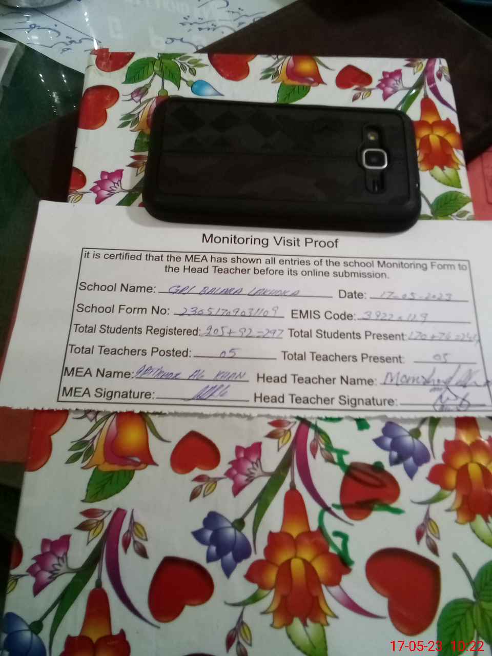 | Attendance Register | Head Teacher | MEA with School | Visit Proof |