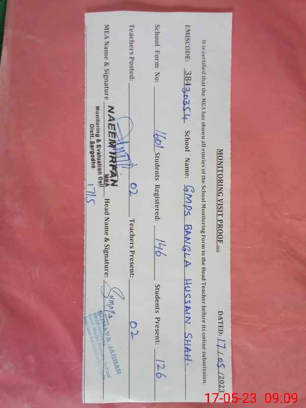 | EMIS Code: 38430354 | Name of School: GPmS BANGLA HUSSAIN SHAH | |||