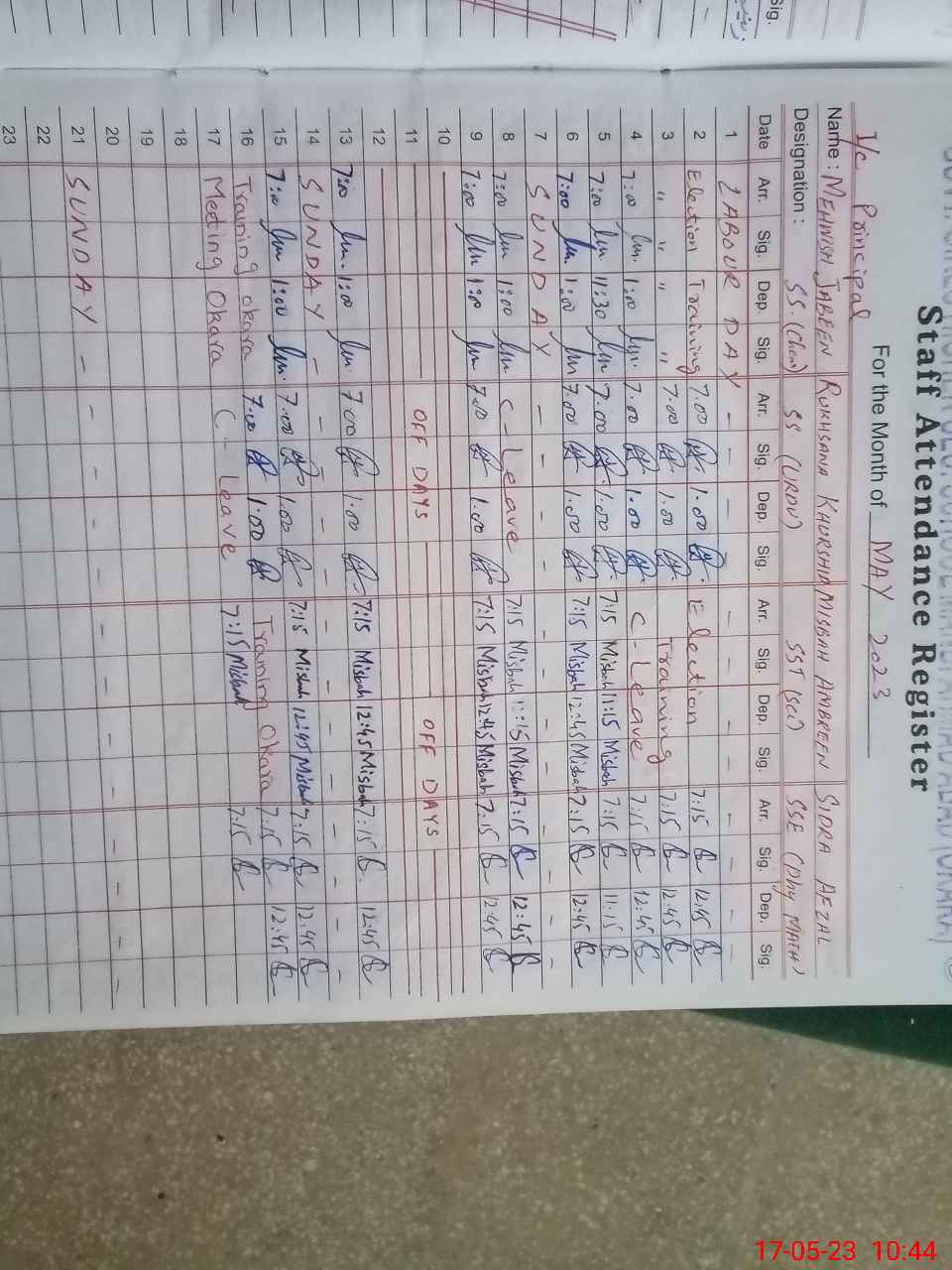 | CNIC | Full Name | Designation | R/C | Absence During Last Calender Month |
