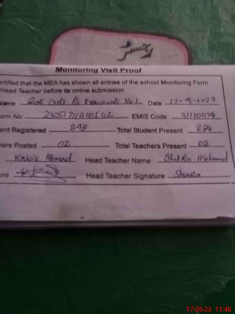 | Certified that this School was Inspected by the Undersigned MEA/DMO Today and the Information Stated Above is as Per Record. | |||||