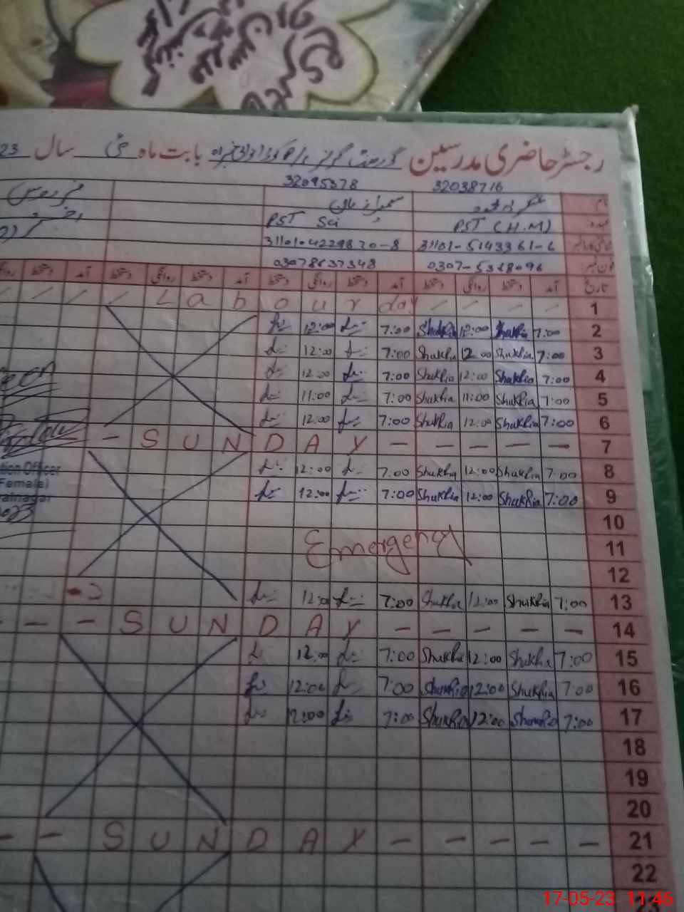 | Name: Sh**** ME**** Designation: (School Headmaster's/Headmistress's) PST Phone/Cell Number: 03**** |