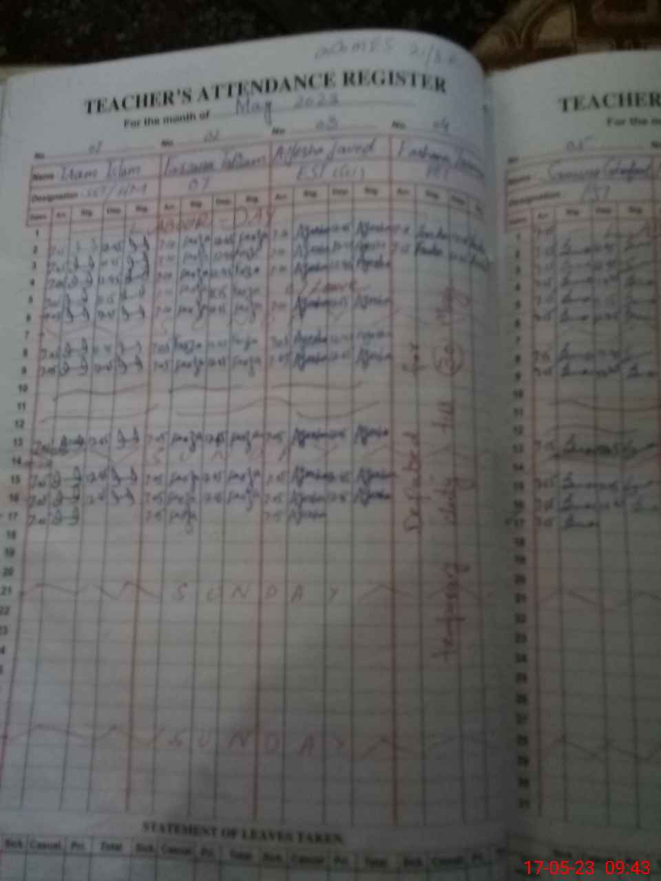 | CNIC | Full Name | Designation | R/C | Absence During Last Calender Month |