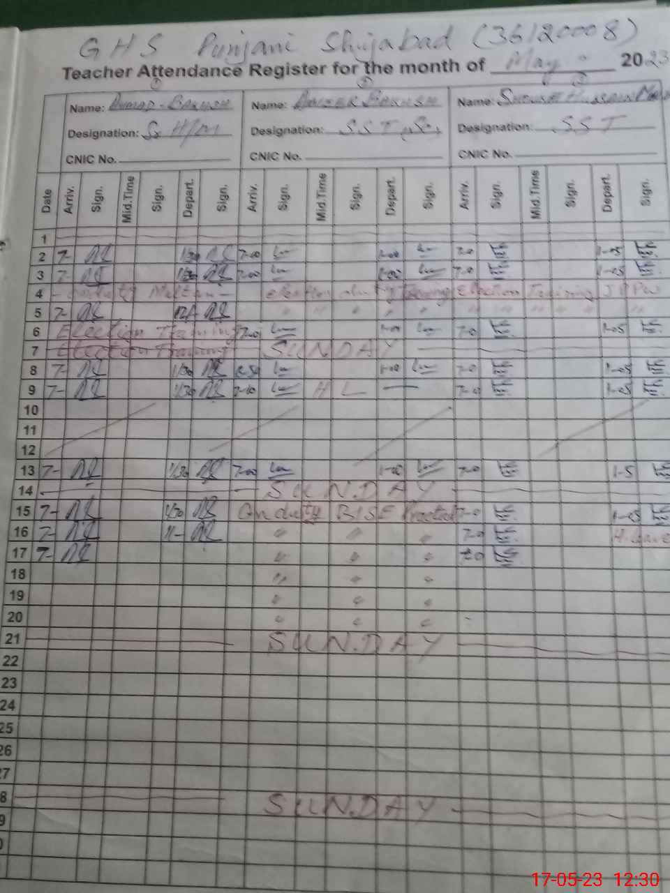 | 36**** | Am**** Ba**** | SST | Regular | 0 | 0 | 0 | 0 | 0 | 0 | 0 | 0 | 0 | Exam Duty |