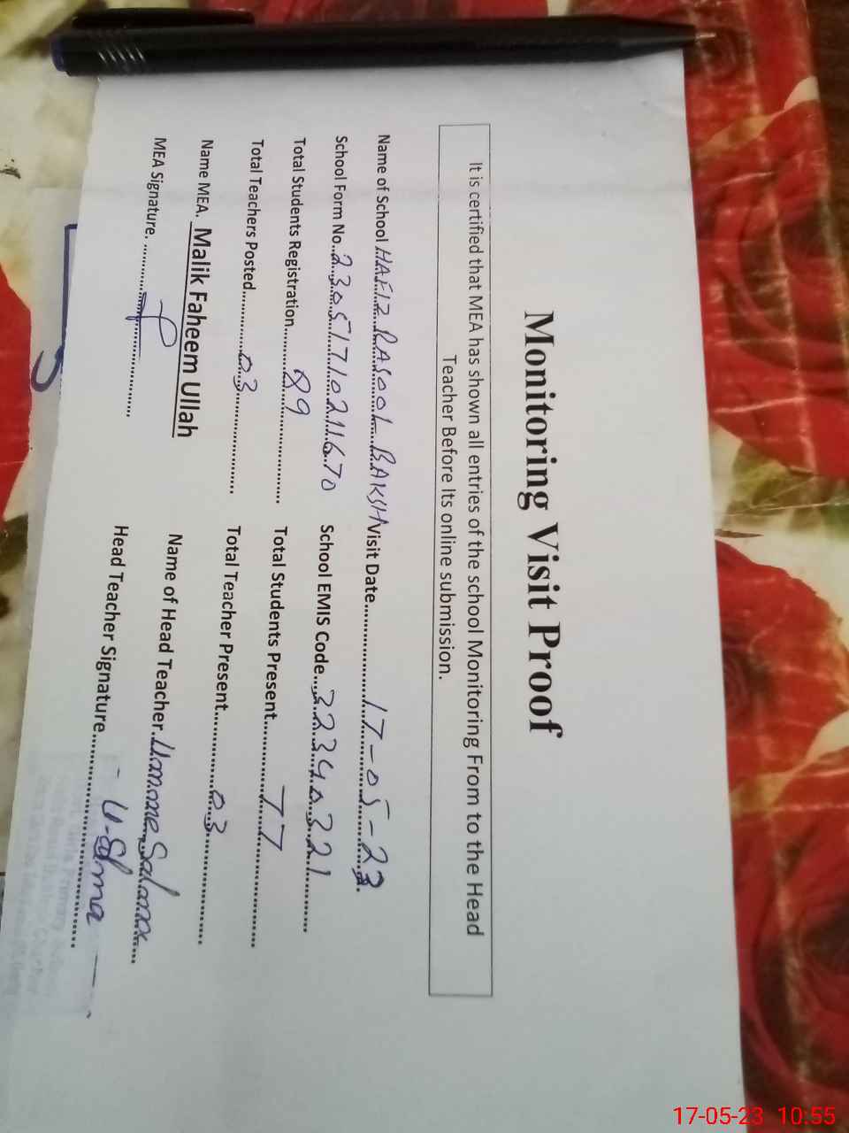 | Certified that this School was Inspected by the Undersigned MEA/DMO Today and the Information Stated Above is as Per Record. | |||||
