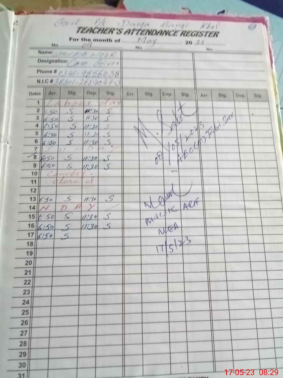 | Name: As**** Na**** Designation: (School Headmaster's/Headmistress's) HEADMASTER Phone/Cell Number: 03**** |