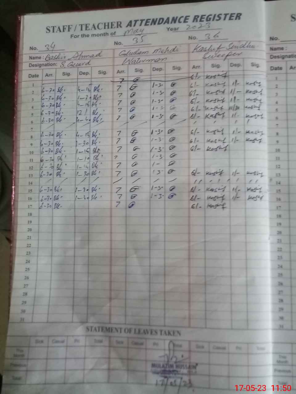 | 36**** | Ha**** Mu**** Na**** Ma**** | EST | Regular | 0 | 0 | 0 | 0 | 0 | 0 | 0 | 0 | 0 | Exam Duty |