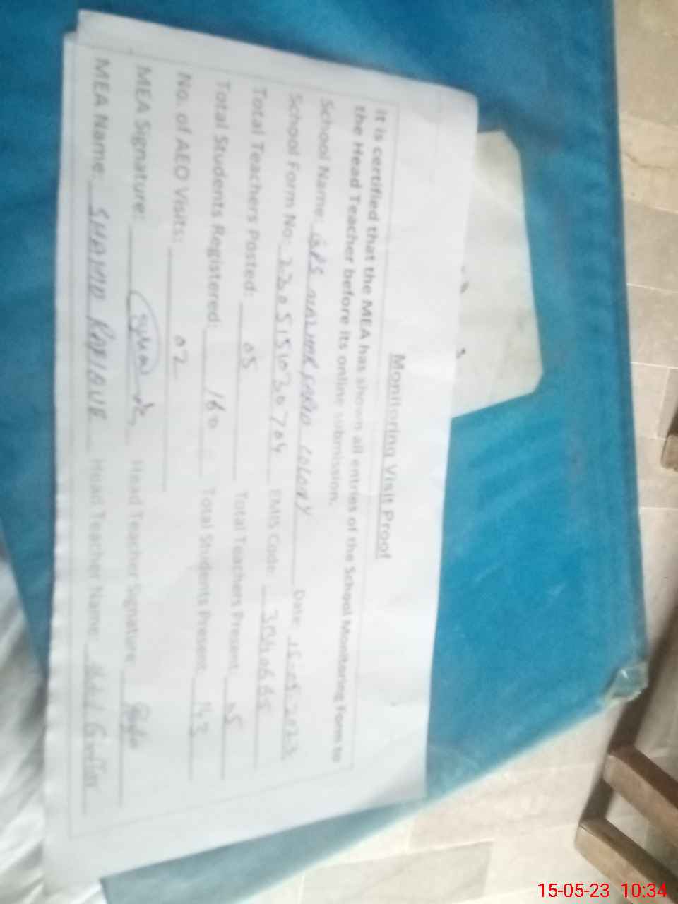 | Attendance Register | Head Teacher | MEA with School | Visit Proof |
