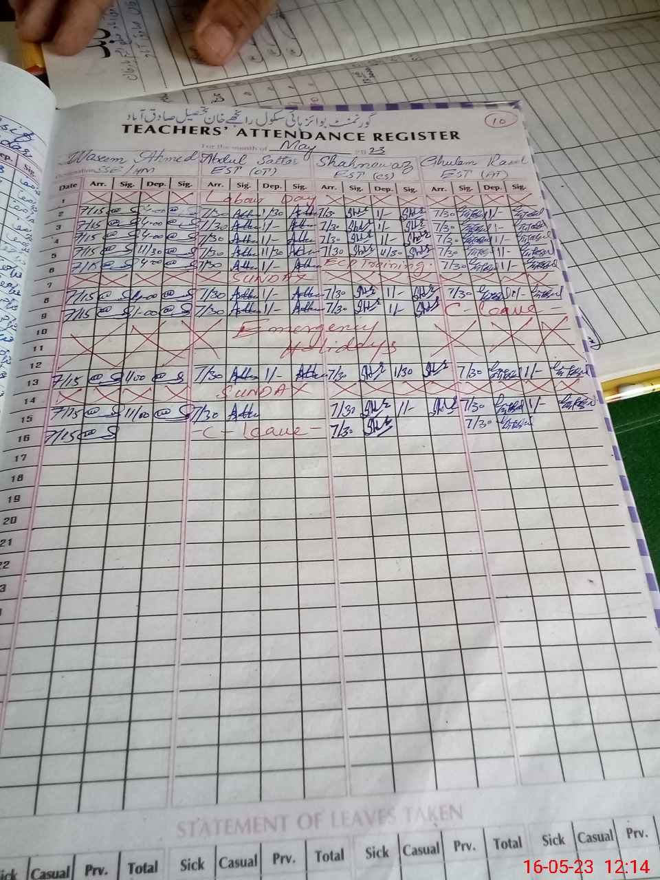 | Leave | Duty | Absent | Maternity | Medical | Ex- Pak |