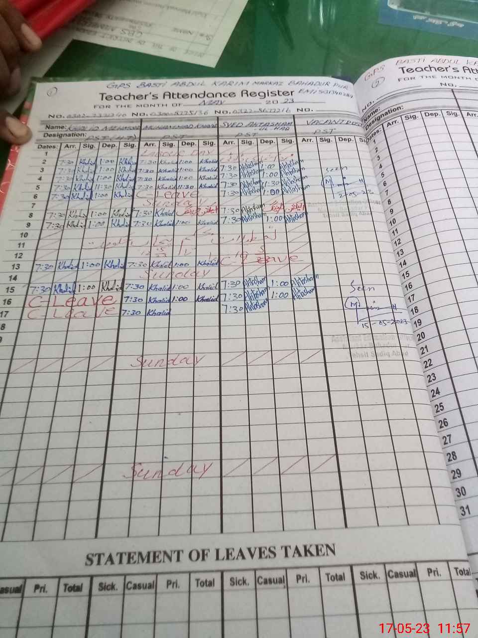 | CNIC | Full Name | Designation | R/C | Absence During Last Calender Month |