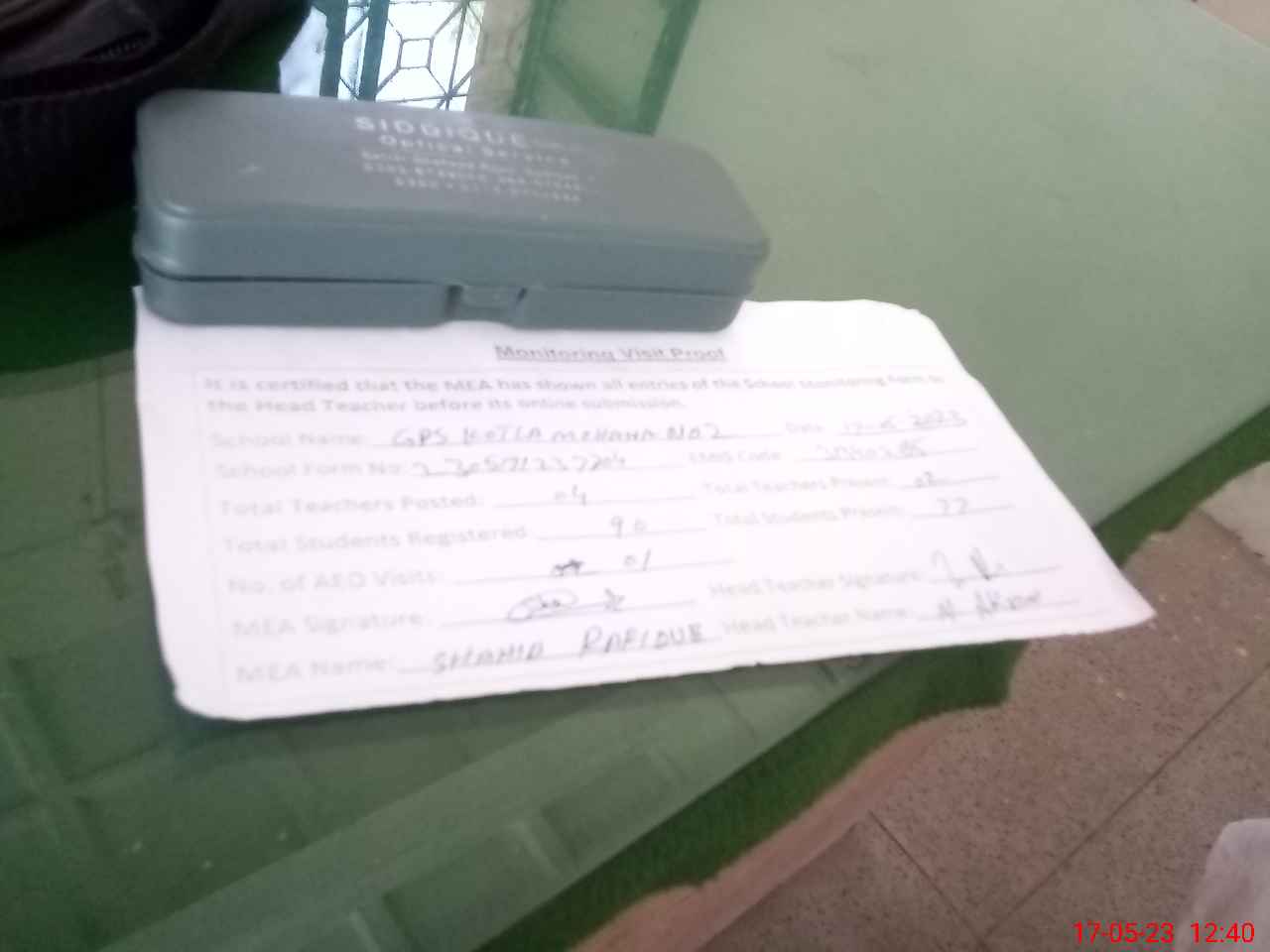 | Attendance Register | Head Teacher | MEA with School | Visit Proof |
