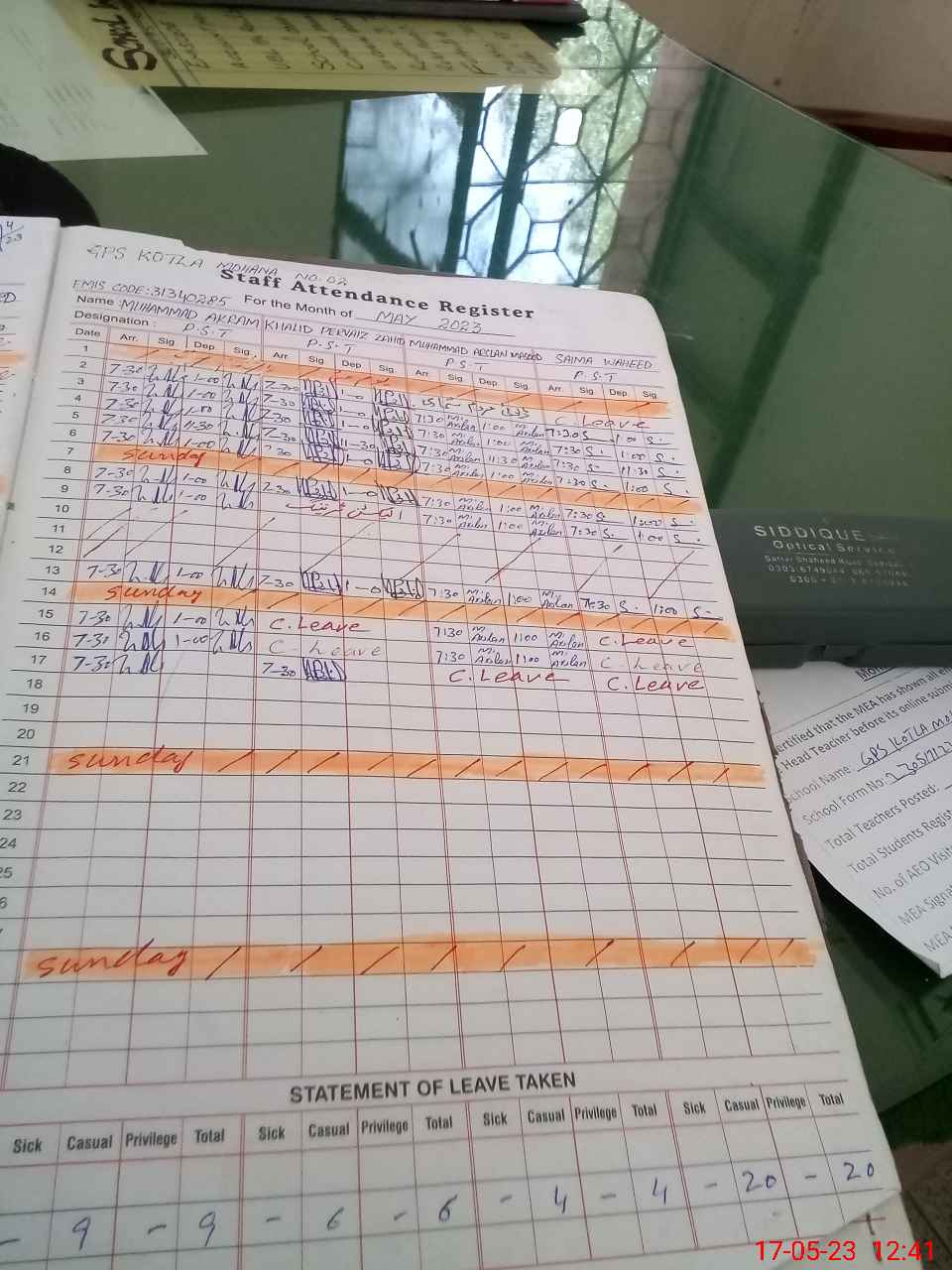 | CNIC | Full Name | Designation | R/C | Absence During Last Calender Month |