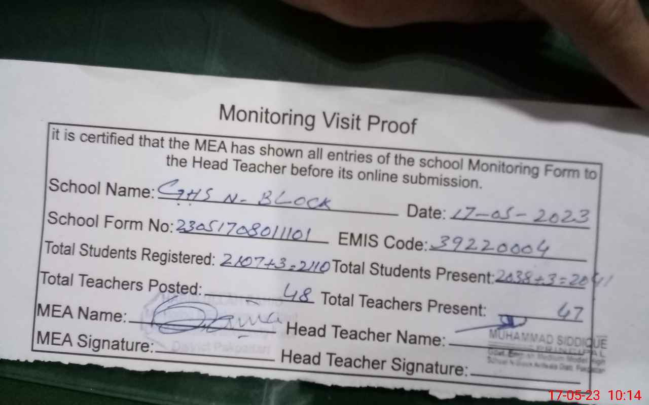 | Attendance Register | Head Teacher | MEA with School | Visit Proof |
